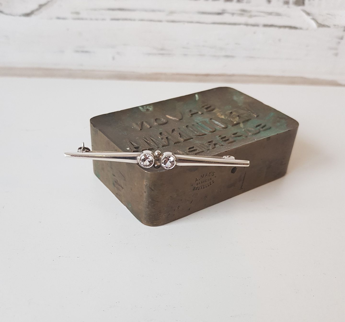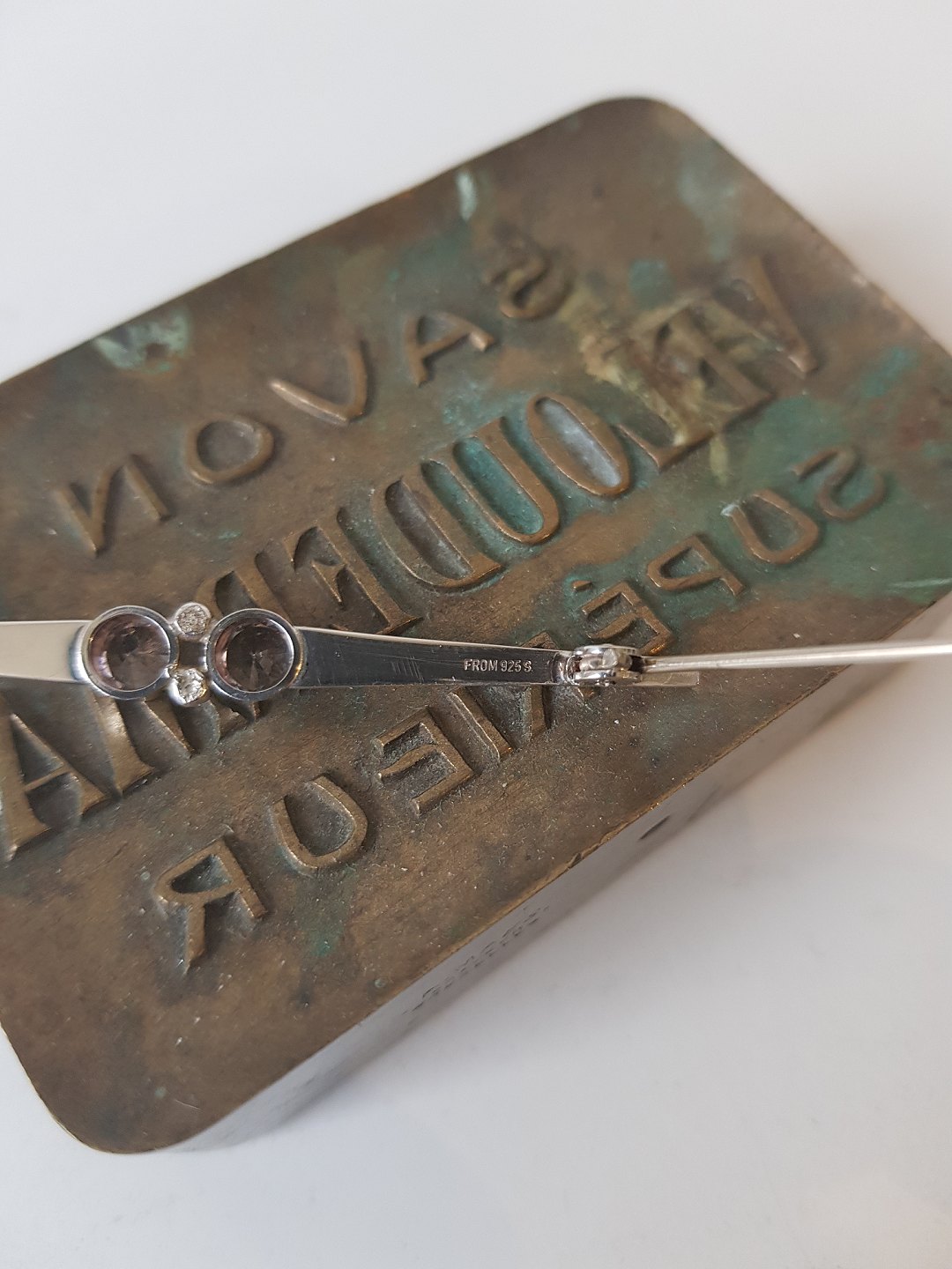 N.E.From sølvbroche med 2 sten af klart bjergkrystal.