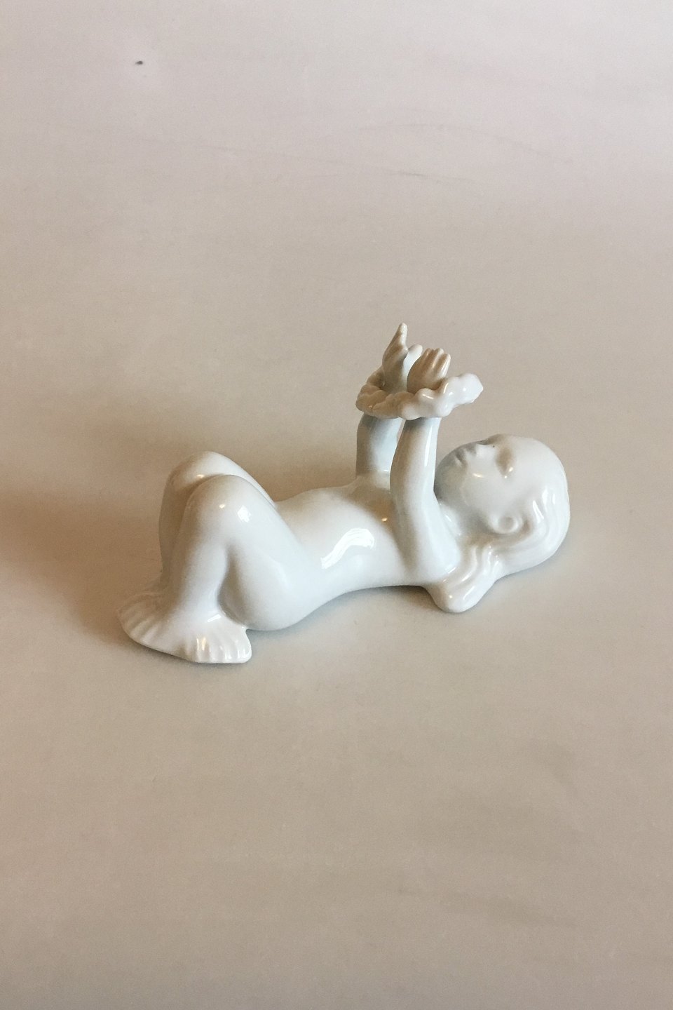 Bing & Grøndahl Blanc de Chine Figur af Liggende havbarn med tang No 2314