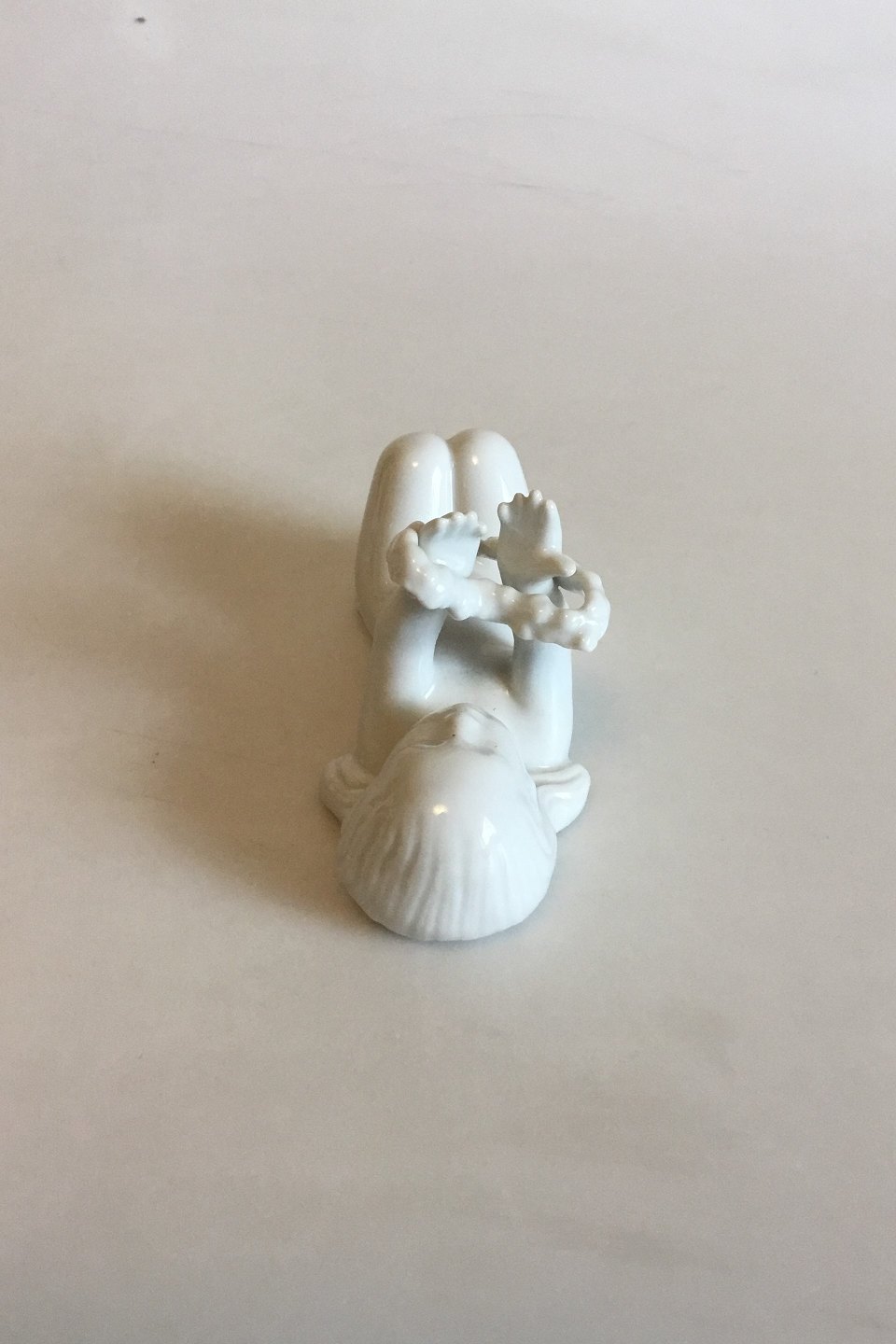Bing & Grøndahl Blanc de Chine Figur af Liggende havbarn med tang No 2314. Måler 12 cm