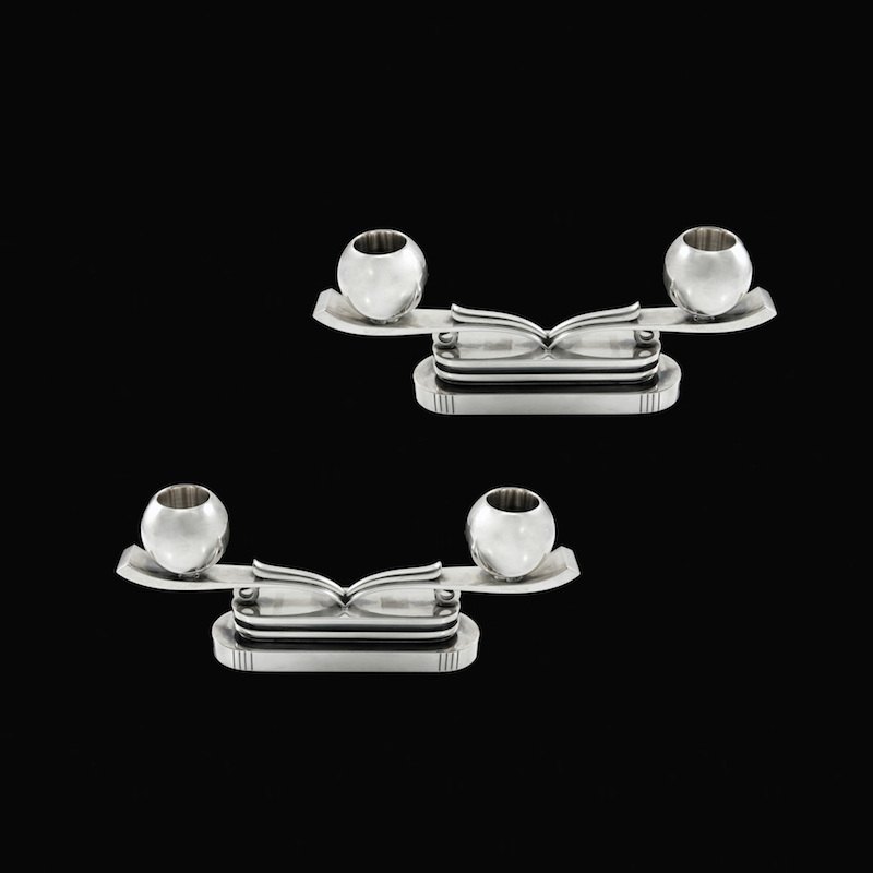 Karl Gustav Hansen. Par art deco stager i sterling sølv. #197.