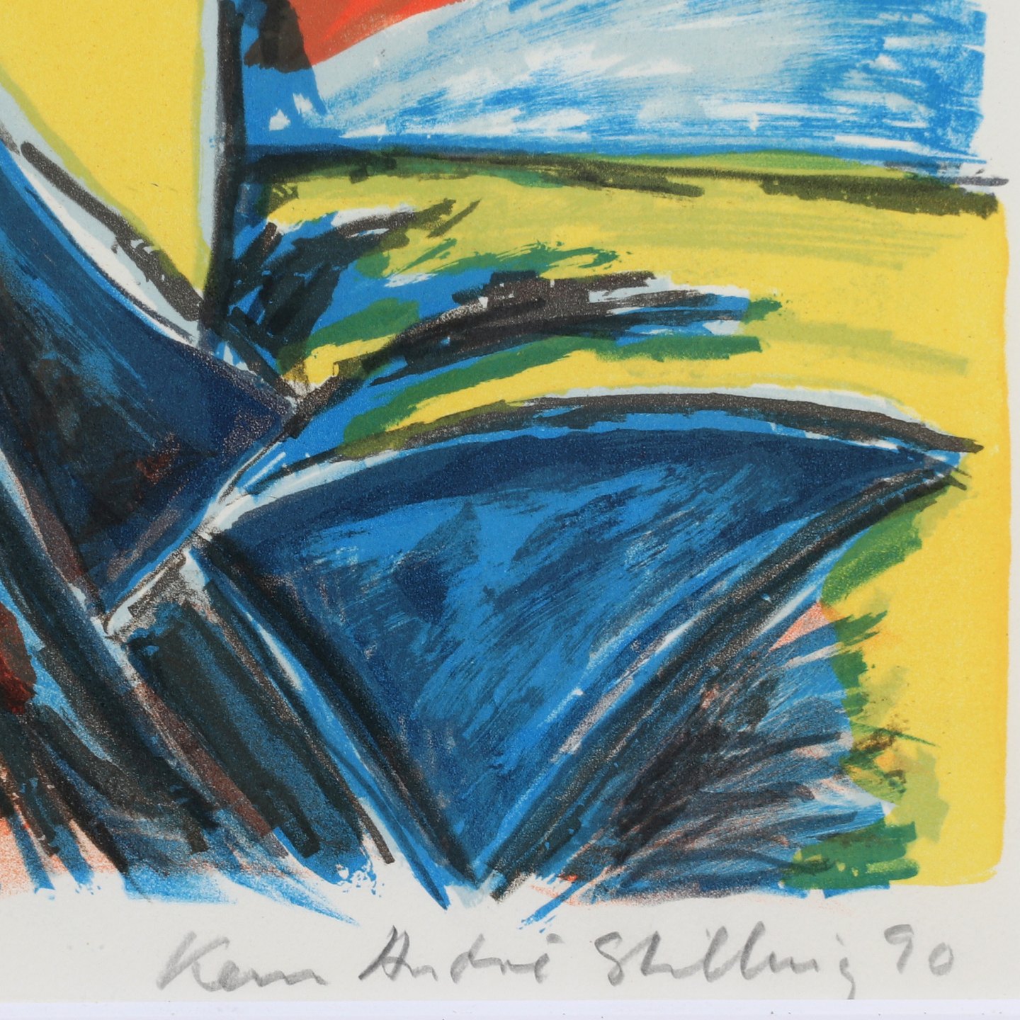 Kenn Andre Stilling (f. 1945) litografi i farver signeret med blyant Kenn Andre Stilling 1990 nr. 78/200 rammemål højde 91,5 cm, bredde 73 cm