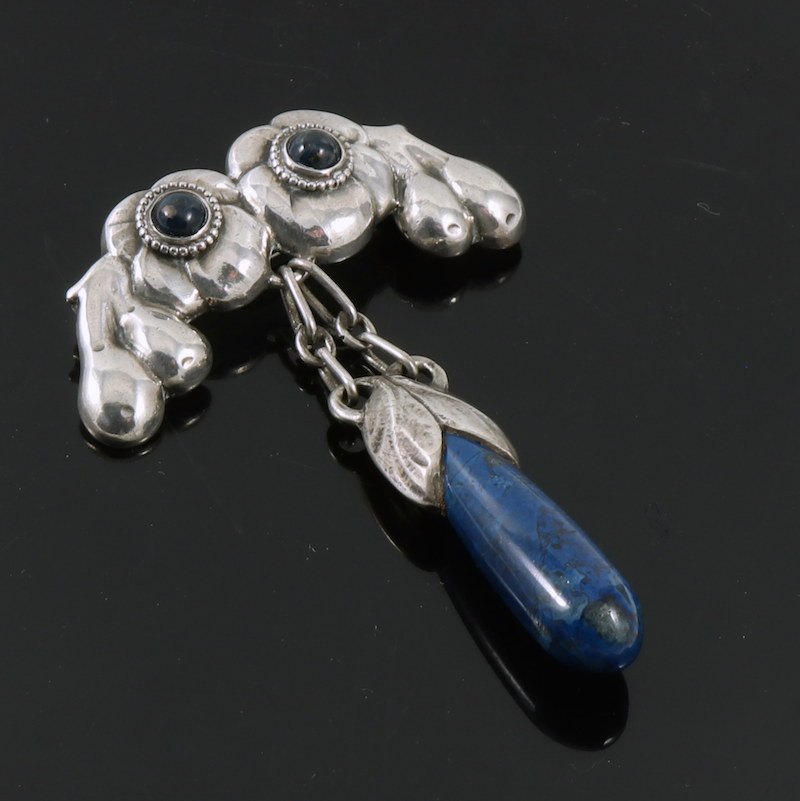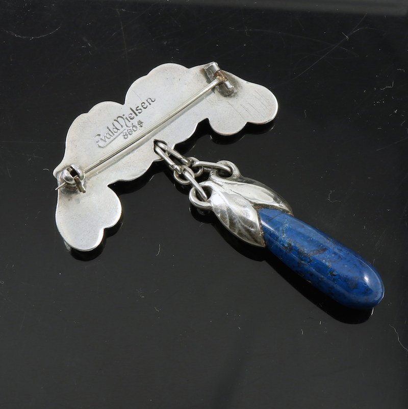 Evald Nielsen. Skønvirke Broche i Sølv med Lapis Lazuli.