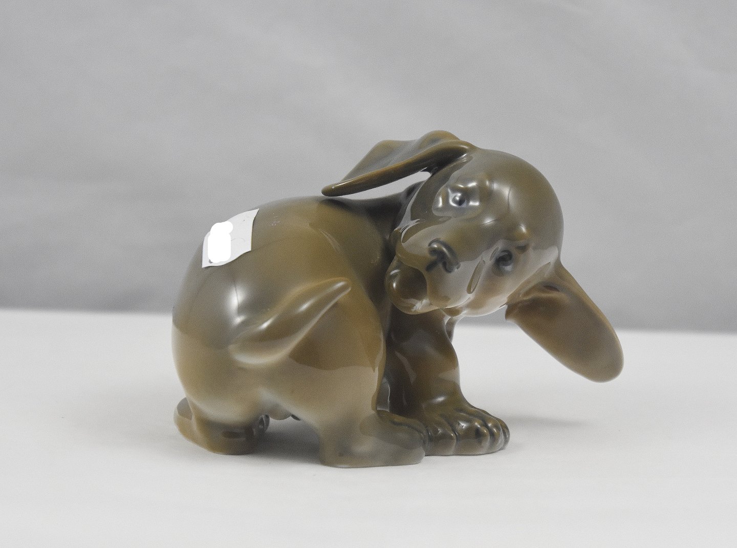 Royal Copenhagen figur af Korthåret, siddende korthåret gravhund nr. 1407. 1 sortering.