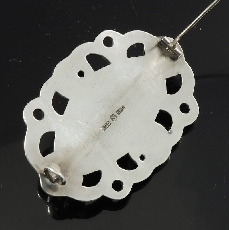 Carl M. Cohr. Skønvirke Broche i Sølv med rav.