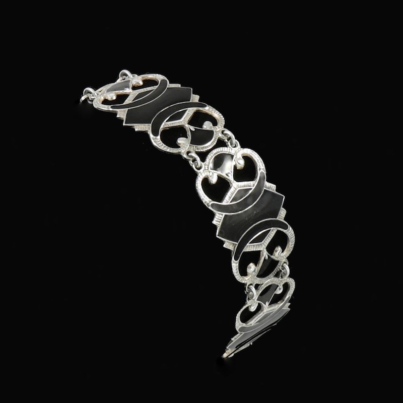 Art deco armbånd i sterling sølv med emalje.