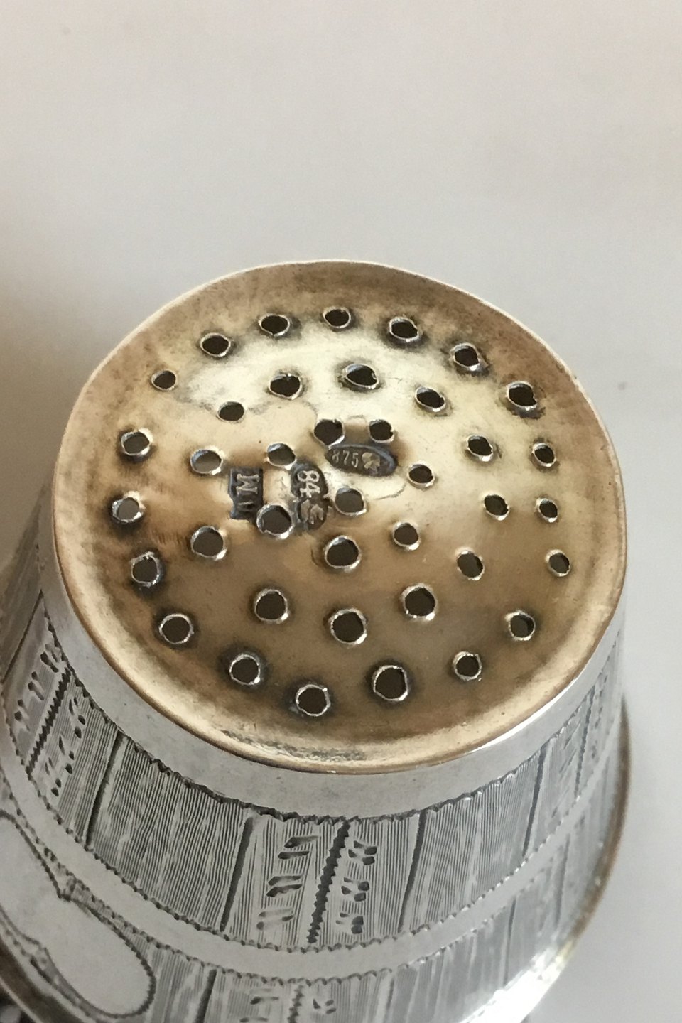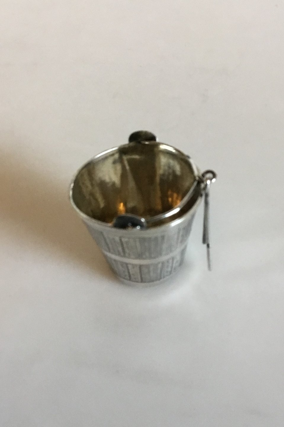 Funny Russian tea strainer formed as a bucket in Silver 84.