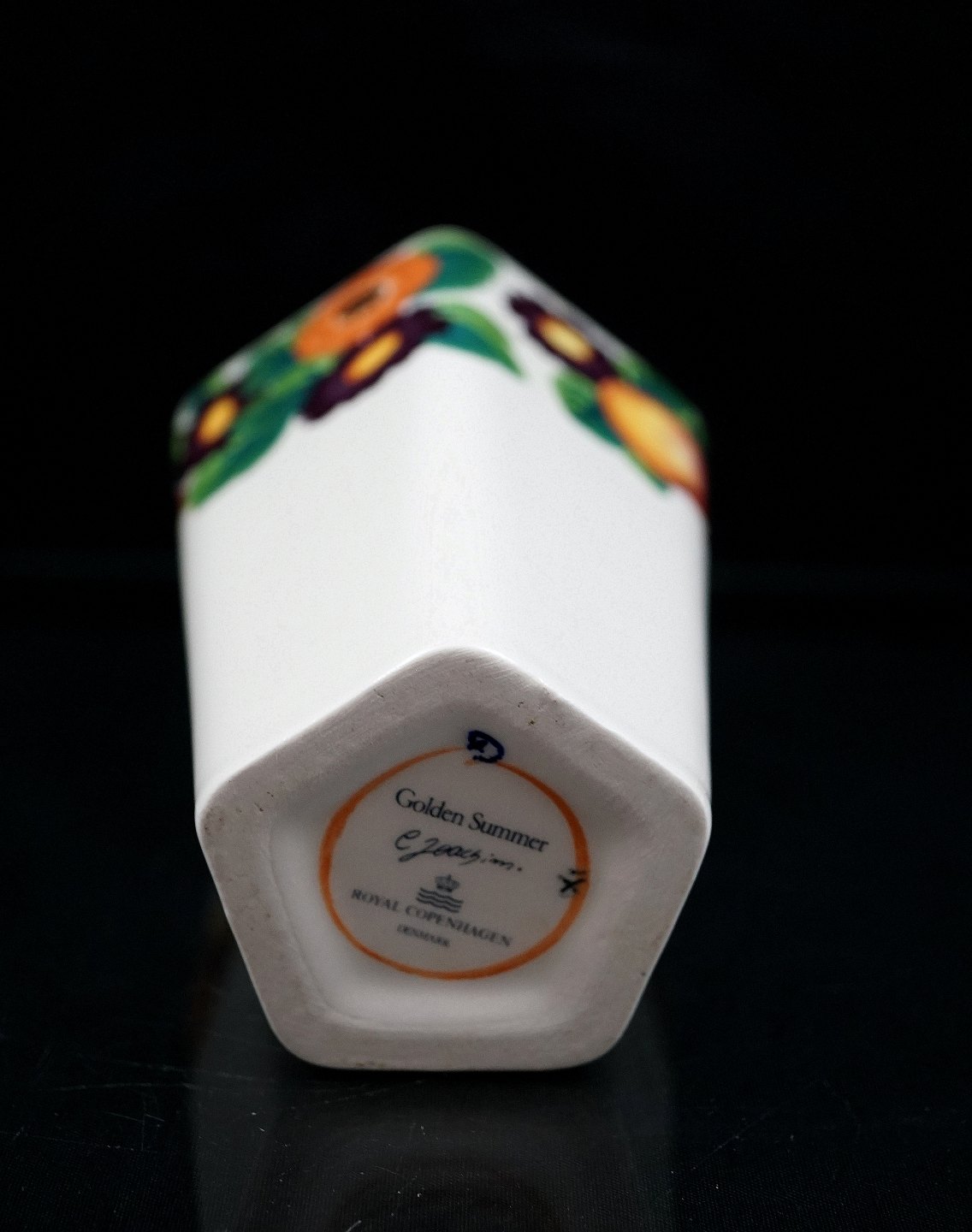 Royal Copenhagen 5-kantet vase Golden Summer, kunstfajance vase.