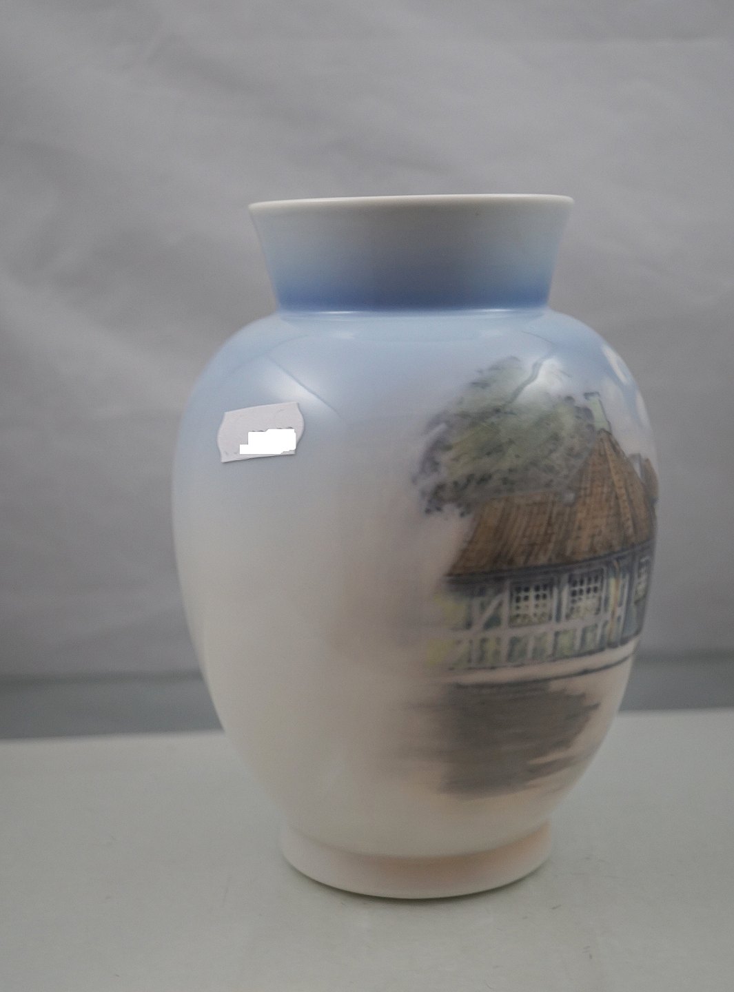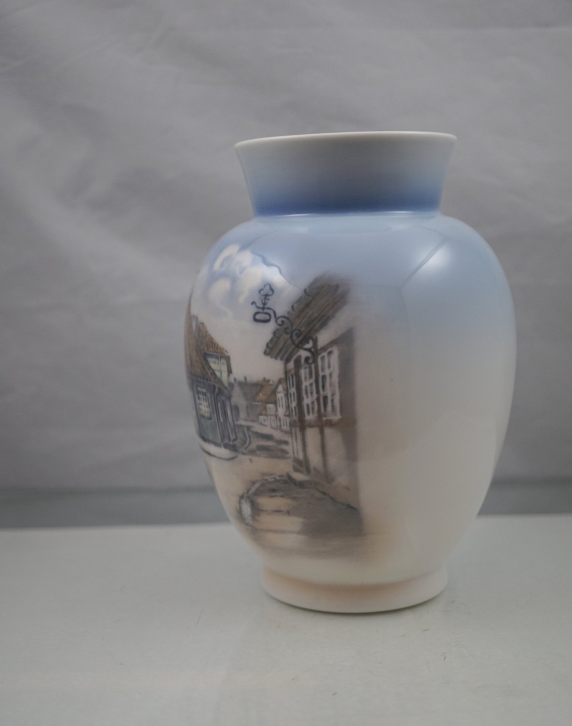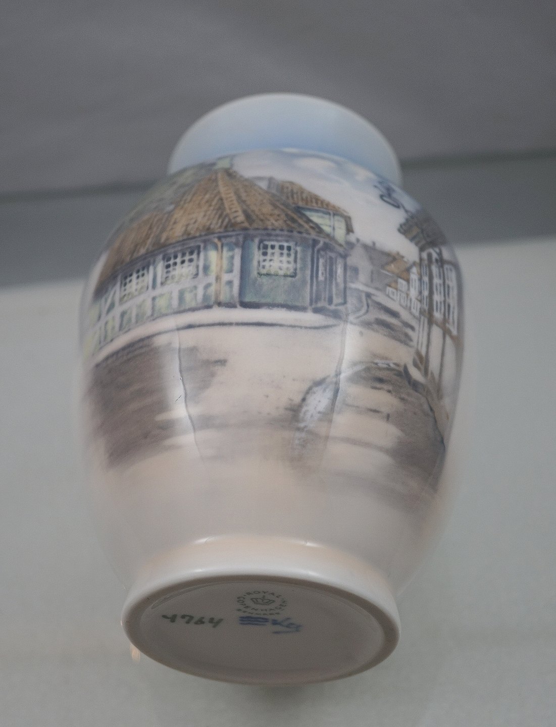 Royal Copenhagen Vase nr. 4764. Porcelænsvase dekoreret med HC Andersens hus i Odense