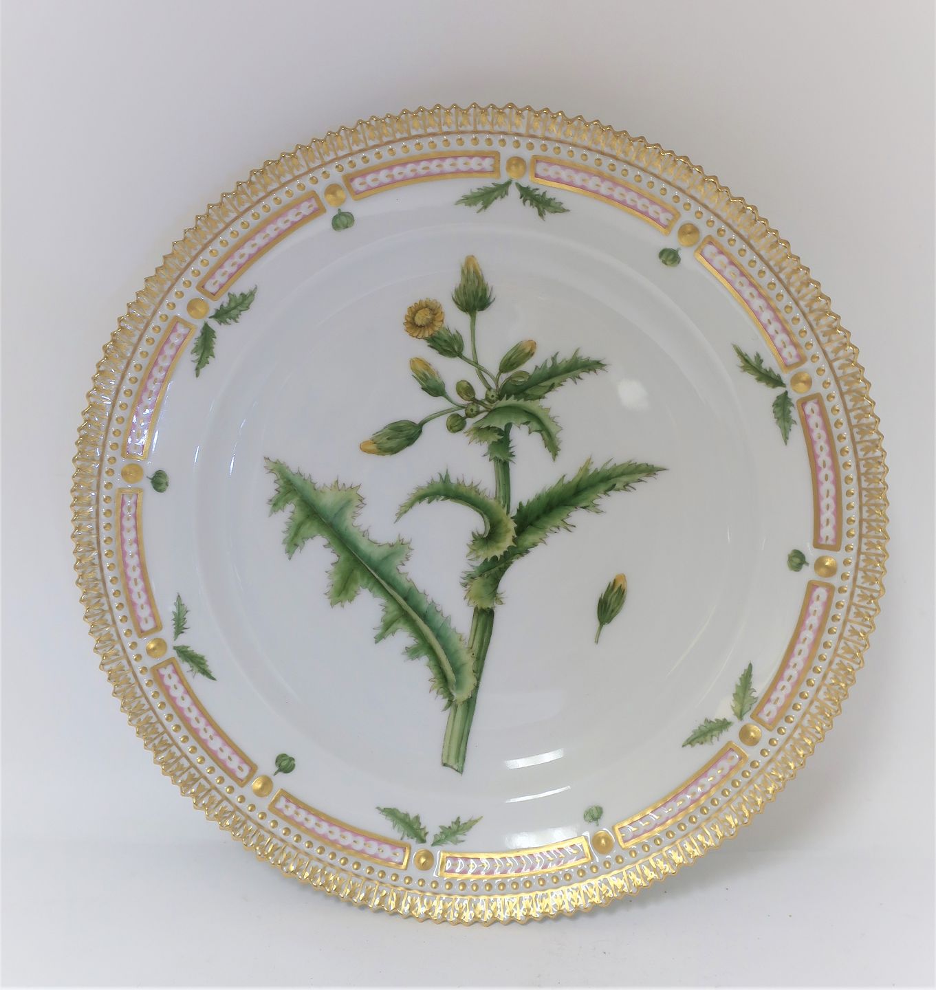 Royal Copenhagen, Flora Danica. Frokost tallerken. Design #3550. Diameter 22 cm. (1 sortering). Sonchus asper Vill