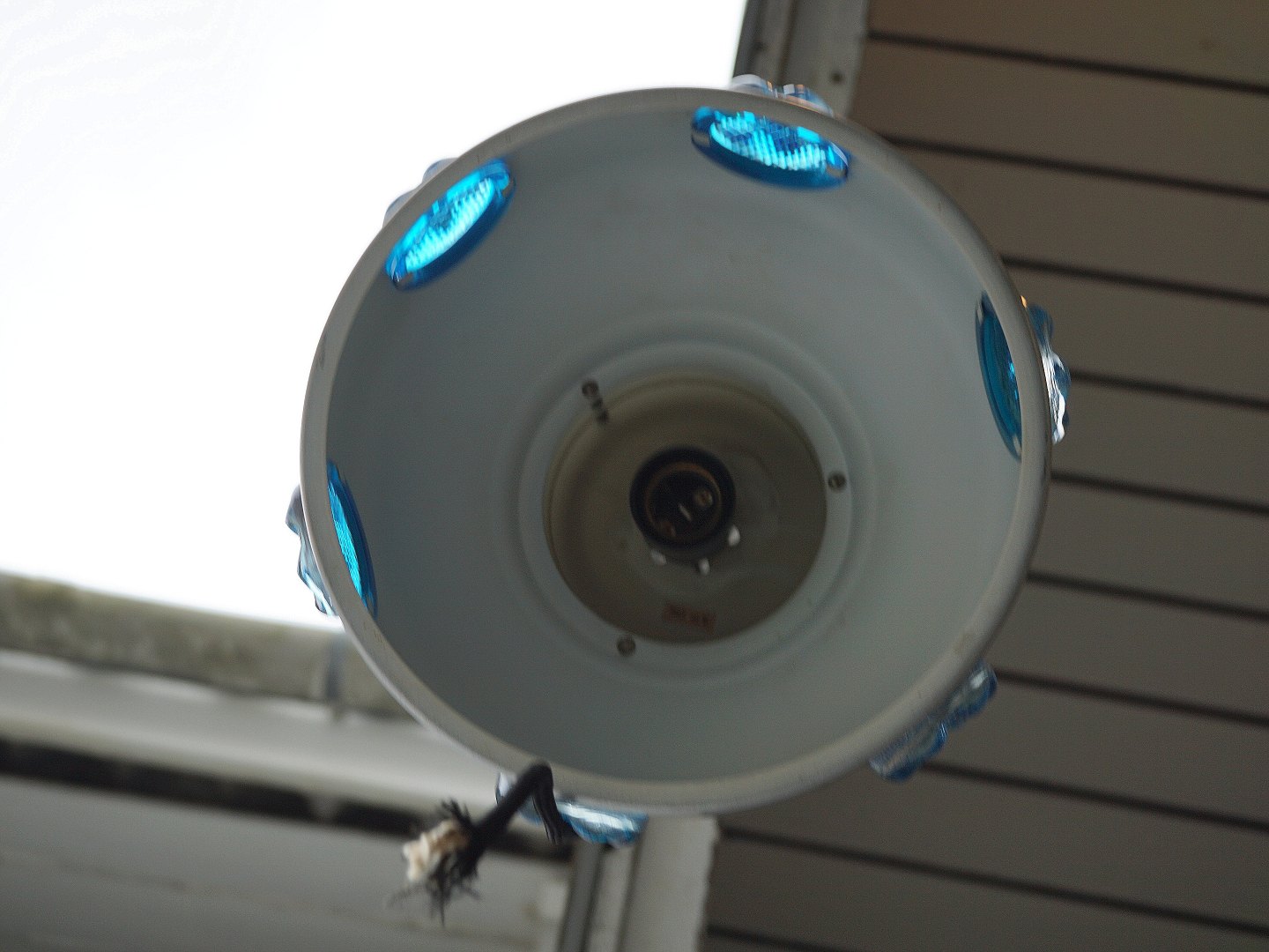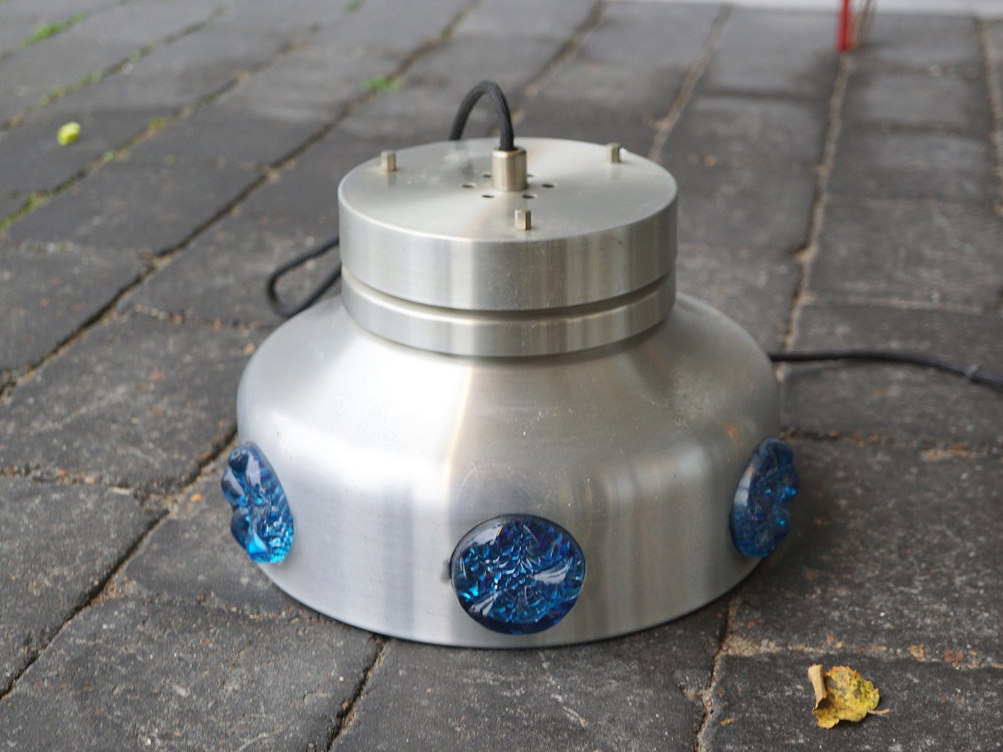 Lampe, pendel, stål, børstet stål, blå, plast, rosetter