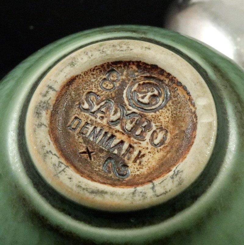 Stentøjskrukke med glasur udført hos Saxbo 1929 - 1968. Stemplet Saxbo, Denmark 8 & 2.