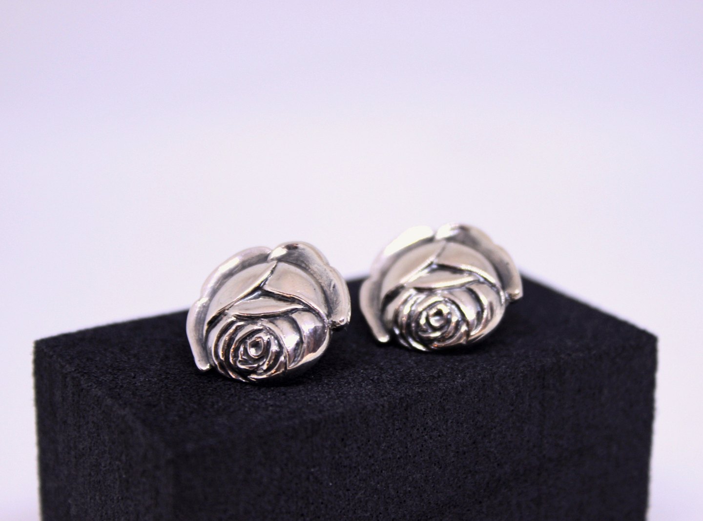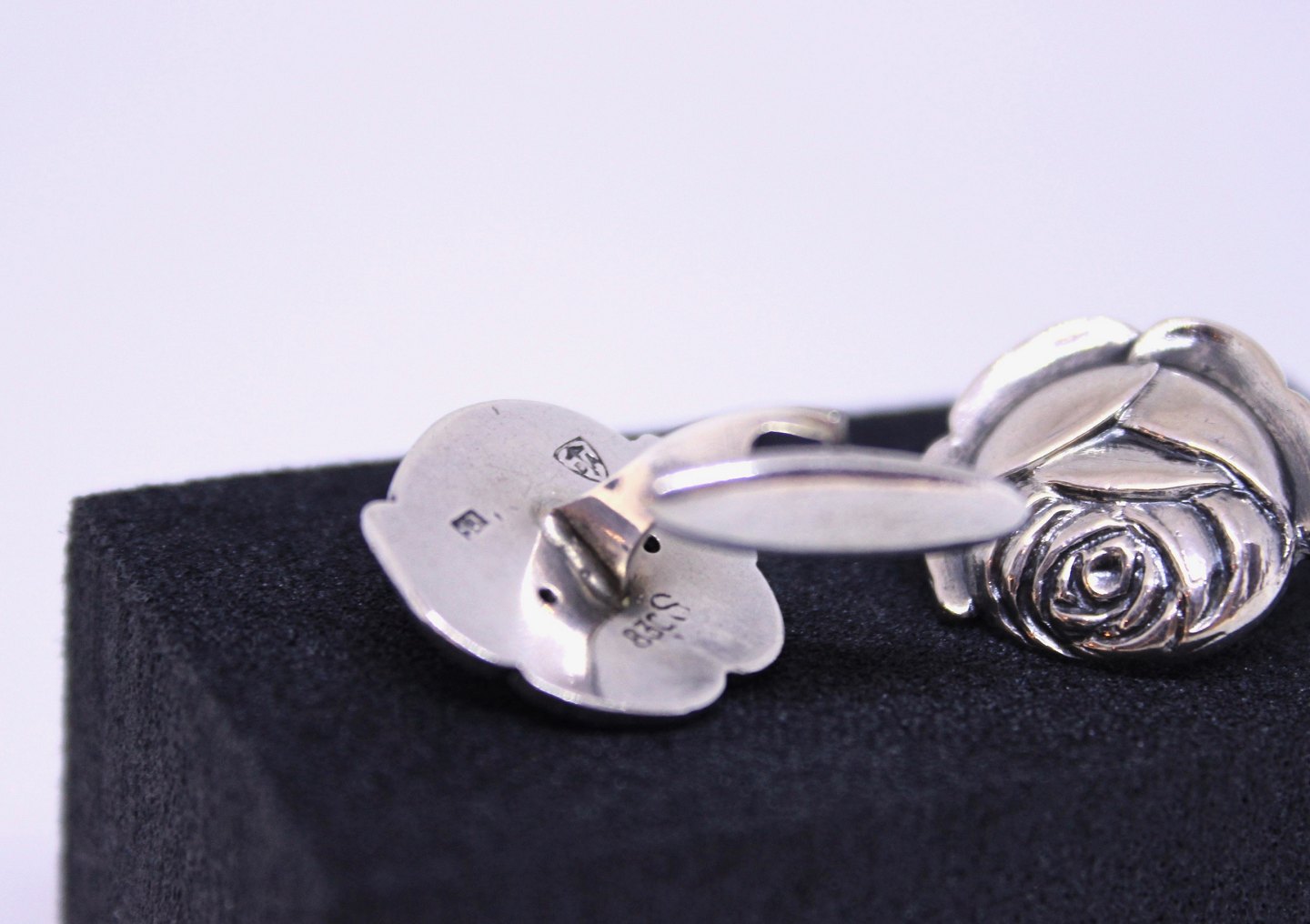 Et sæt manchetknapper af 830 sølv og formet som roser.