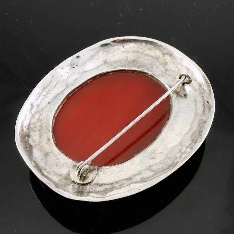 Skønvirke Broche i Sølv med karneol.