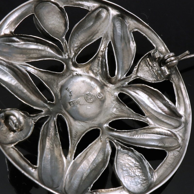Carl M. Cohr. Skønvirke Broche i Sølv med malakit.