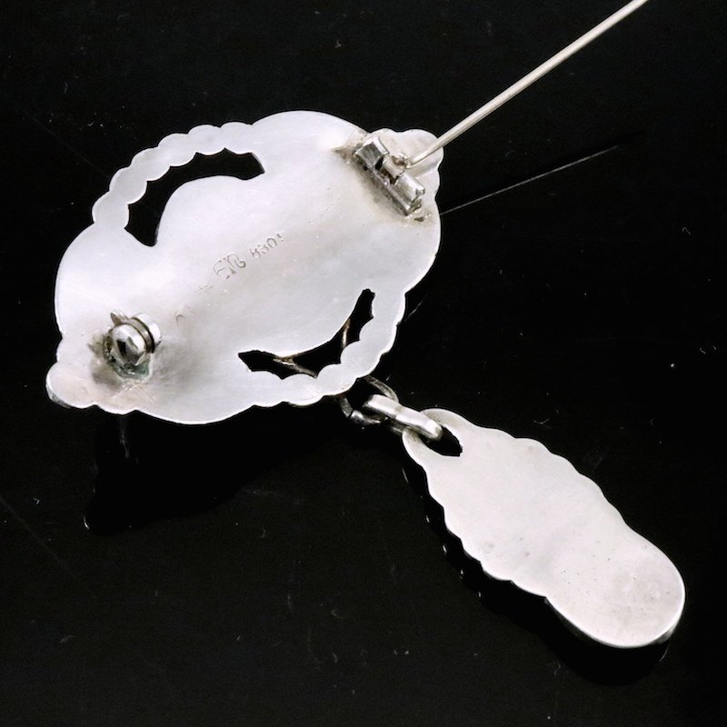 Evald Nielsen. Skønvirke Broche i Sølv med månesten.