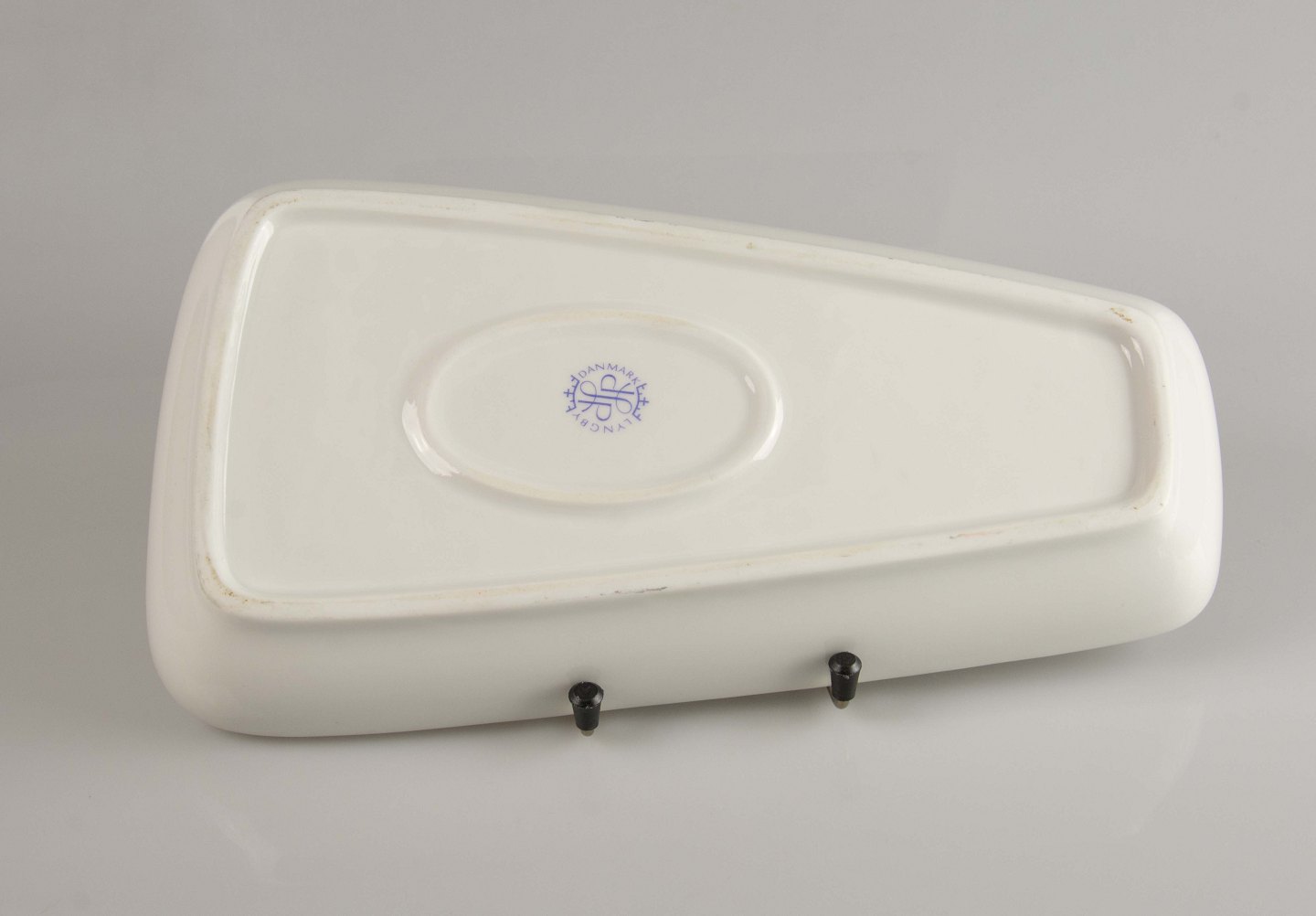 Mellem fad. Asparges motiv. H. 3,5 cm. L. 28 cm. B. 11-17 cm. Kr. 150,-