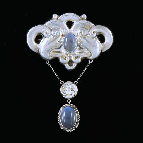 Grann & Laglye. Skønvirke Broche i sølv med månesten.