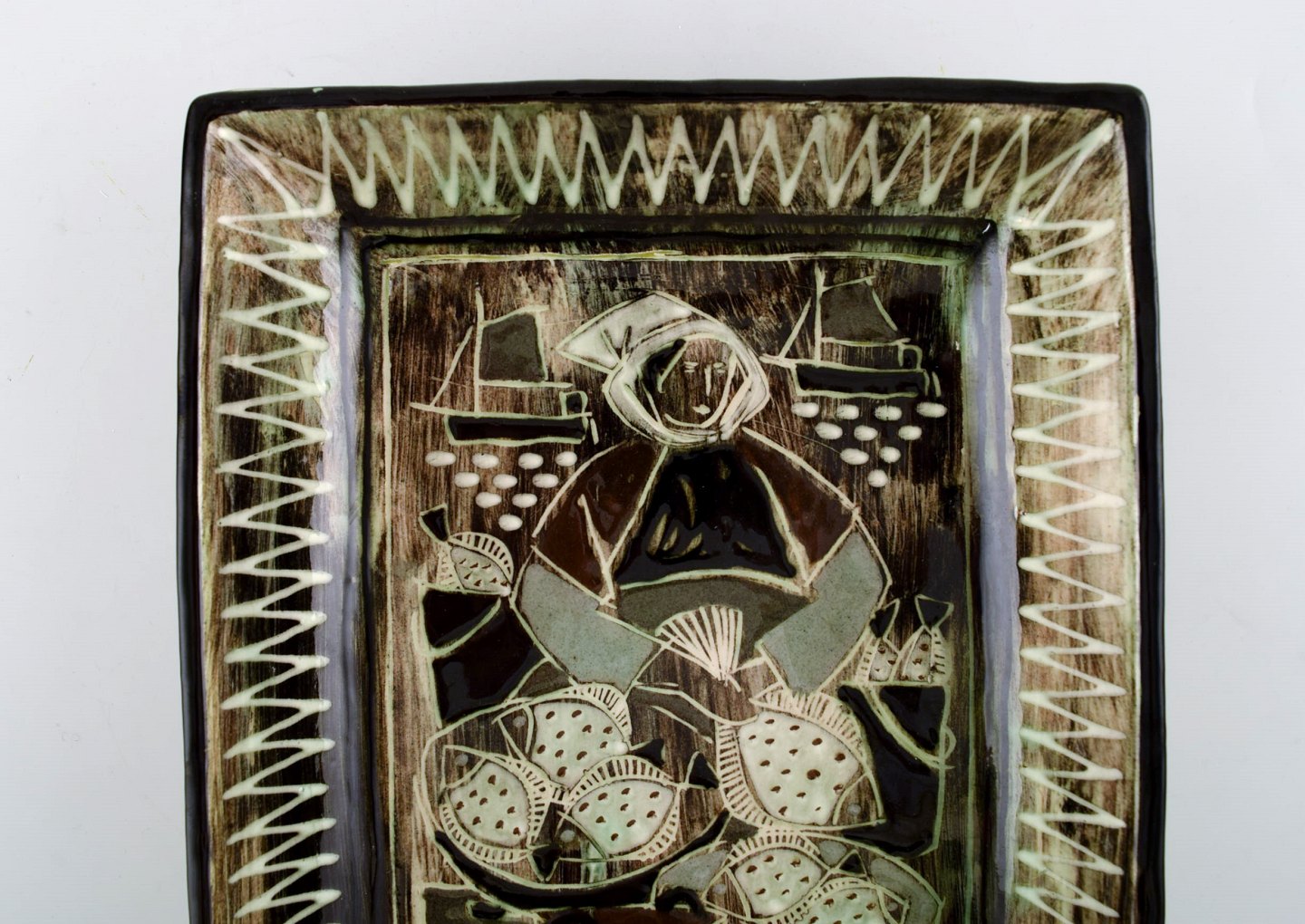 Astrid Tjalk for Kähler. Unika skål i glaseret keramik med motiv af fiskekone. 1960'erne.