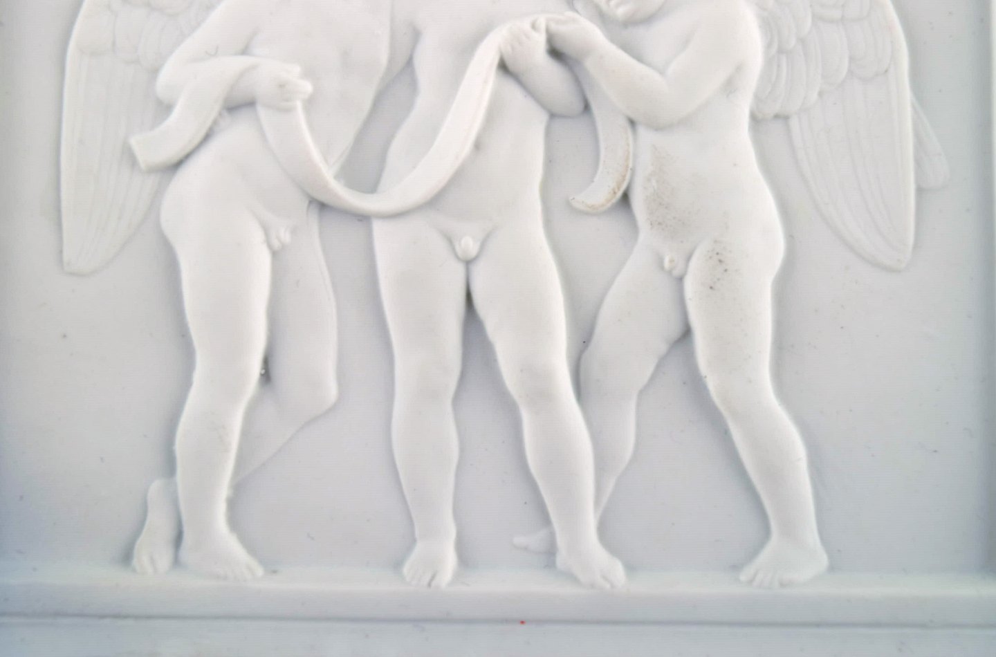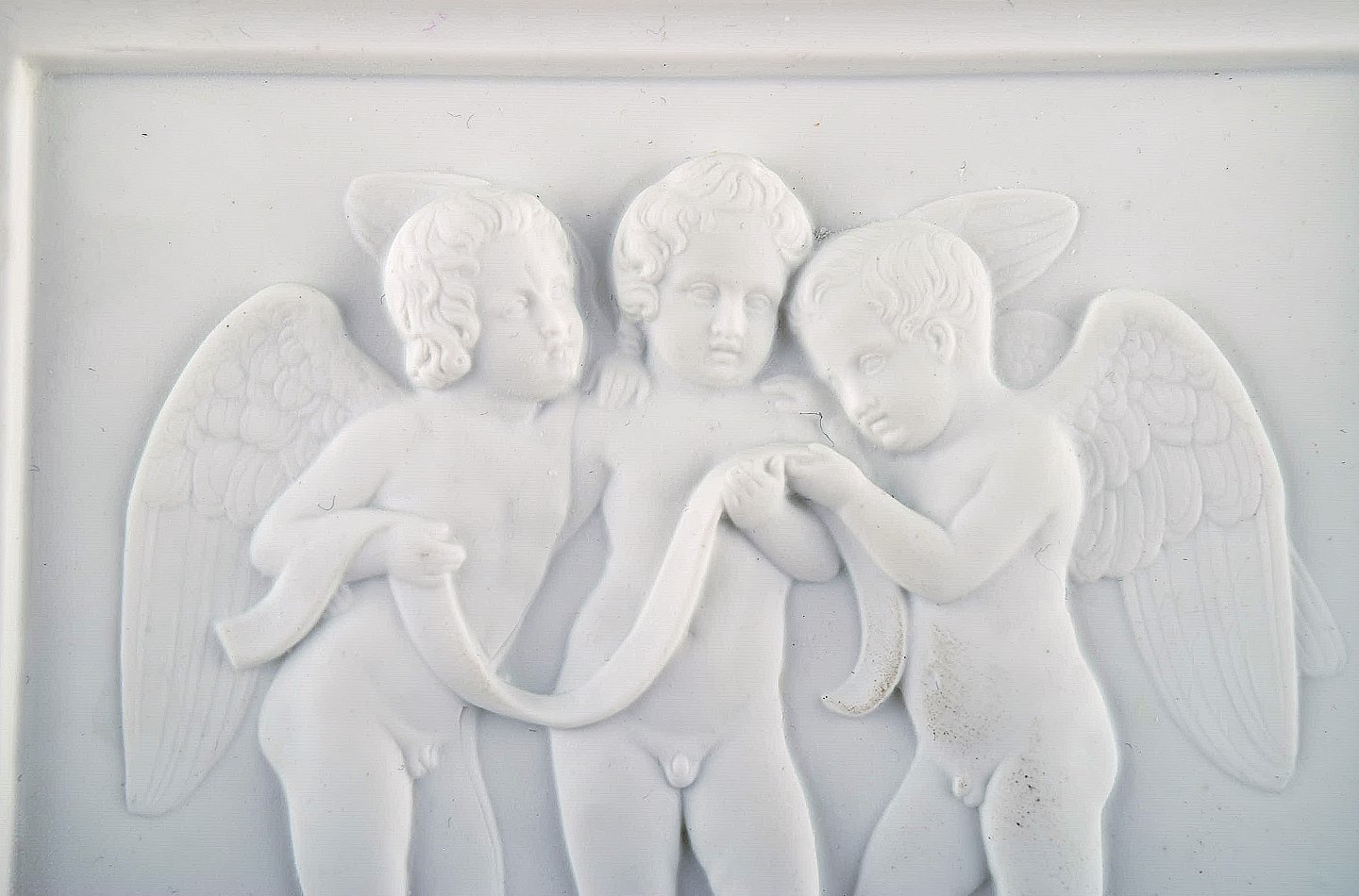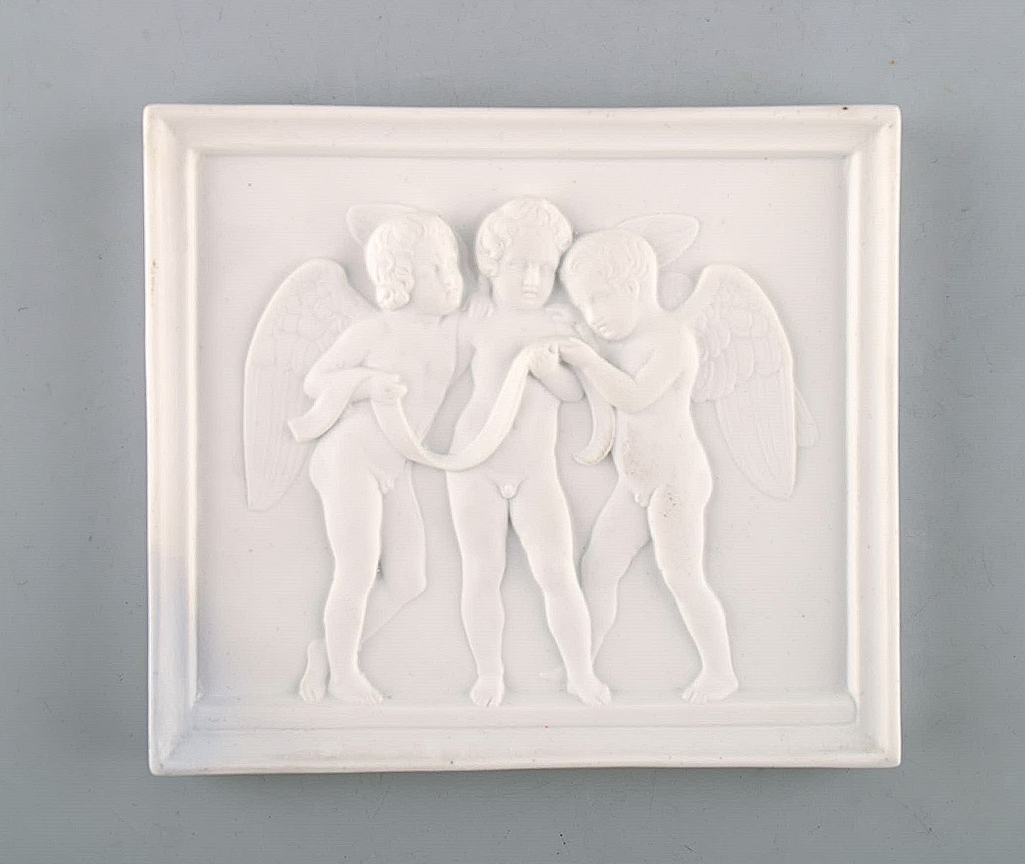 Royal Copenhagen efter Thorvaldsen. Antik sjælden biscuit plakette. Tre engle. 1870'erne.