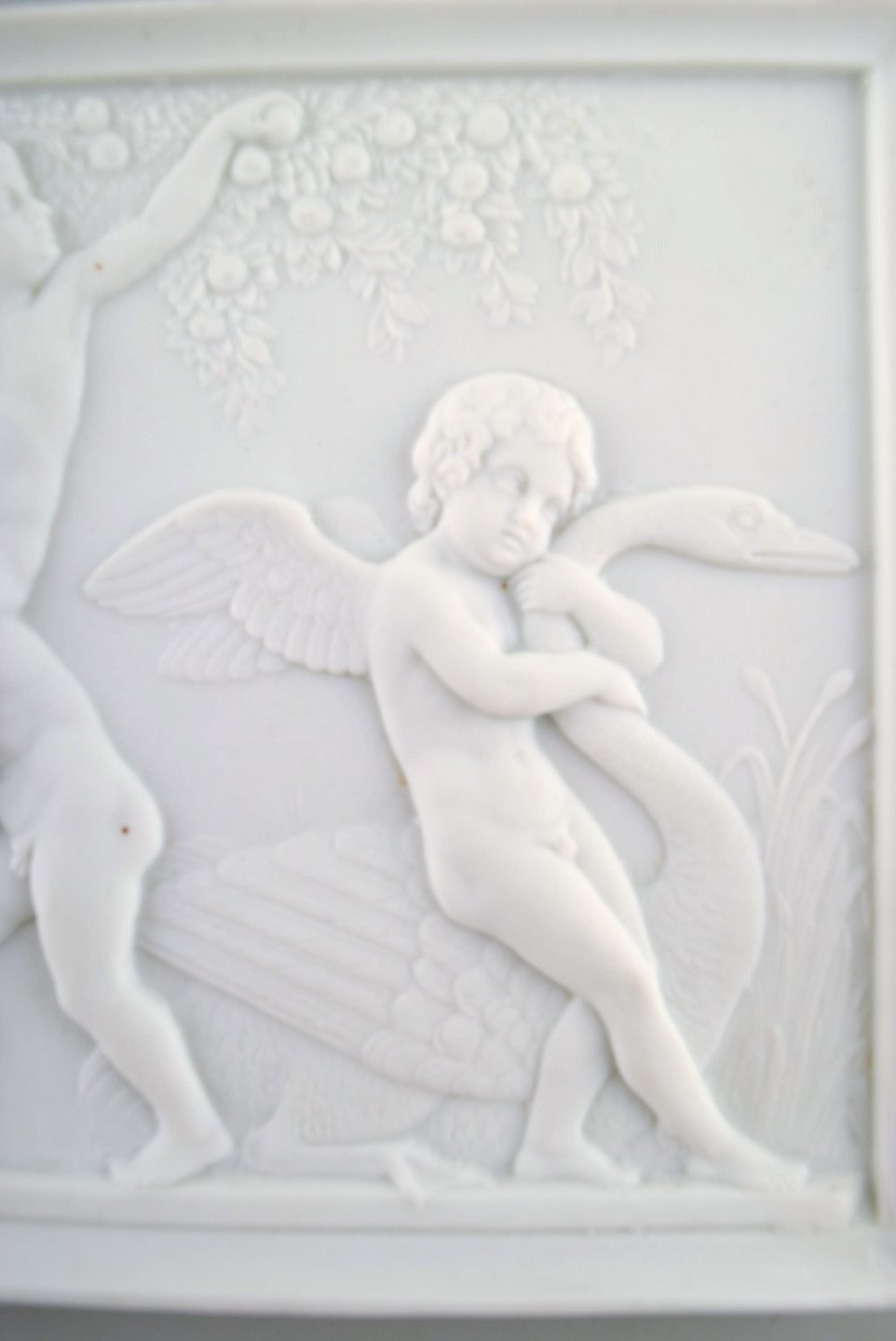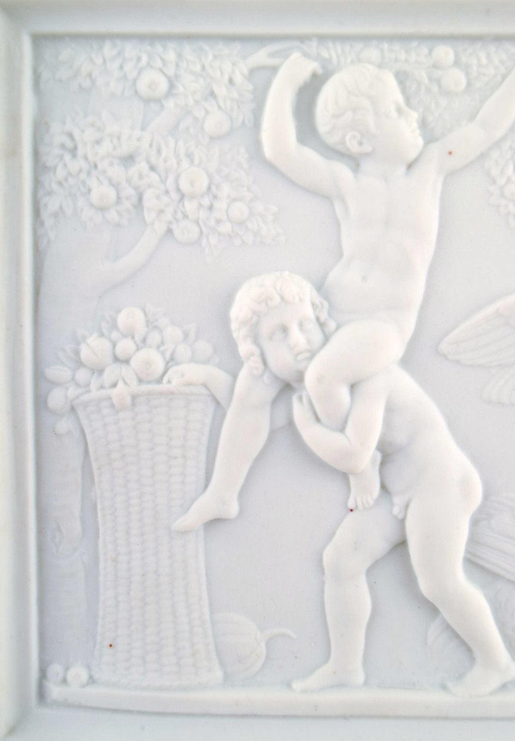 Royal Copenhagen efter Thorvaldsen. Sjælden biscuit plakette. Drenge stjæler frugt. 1870'erne.
