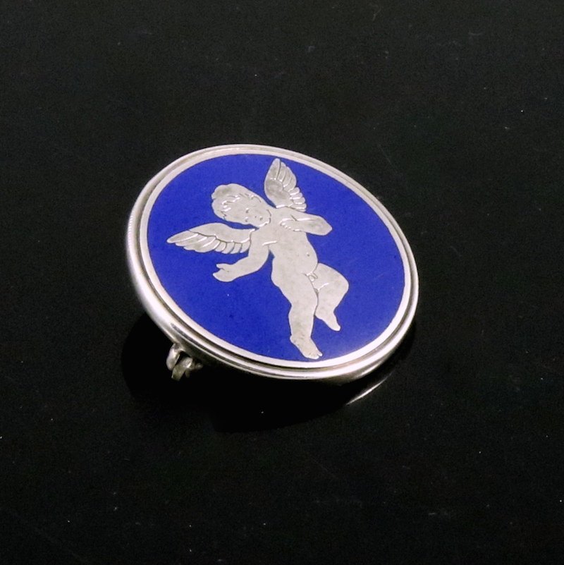 Georg Jensen. Broche i Sterling Sølv med emalje #302 - Harald Nielsen.