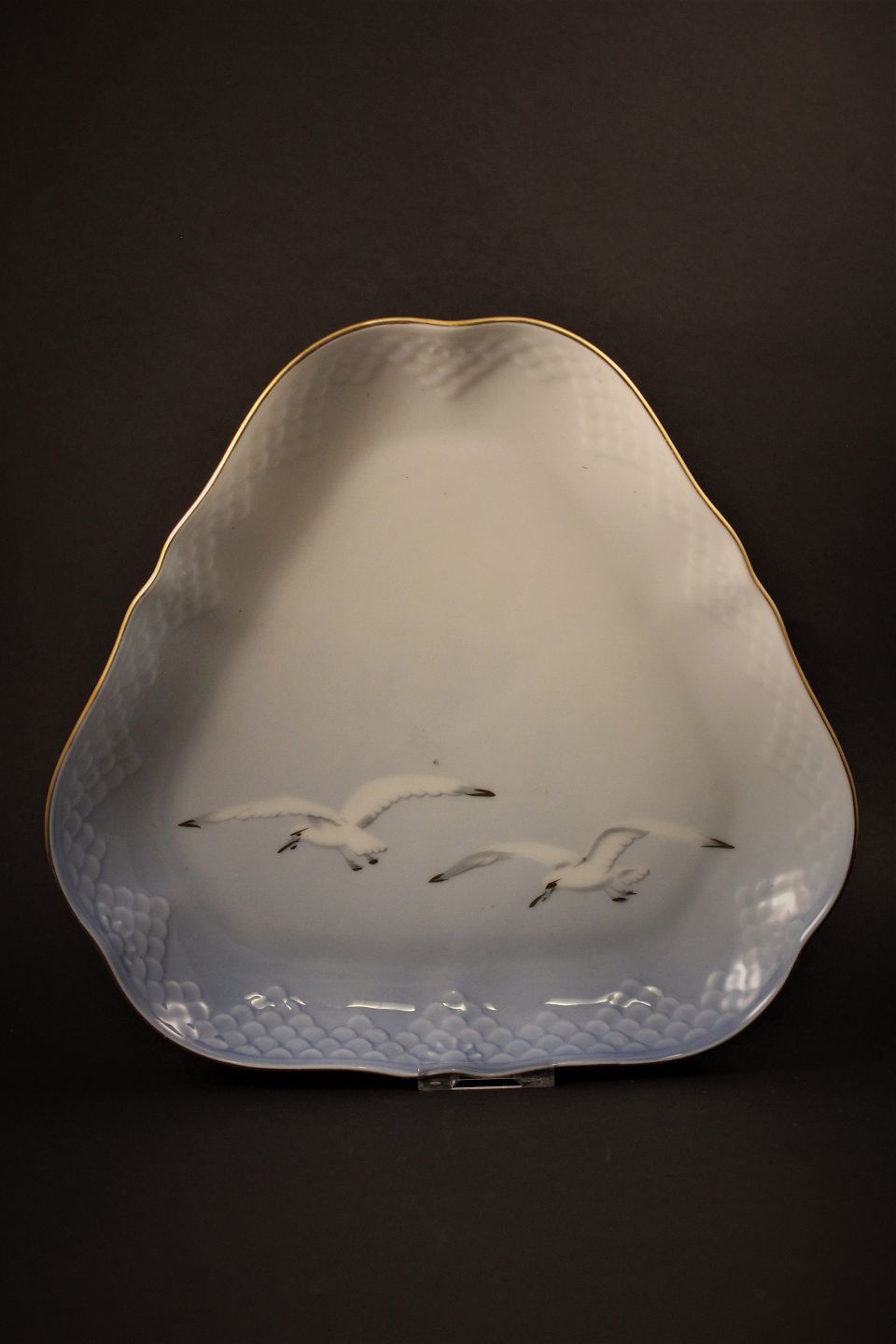 Bing & Grøndahl kagefad i Mågestel med guldkant.