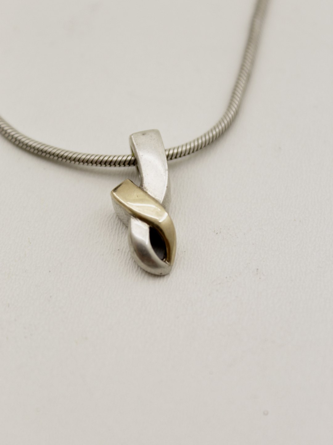 Sterling silver necklace 39.5 cm. with pendant 1.8 x 0.8 cm in sterling and with gold Nr. 386016
