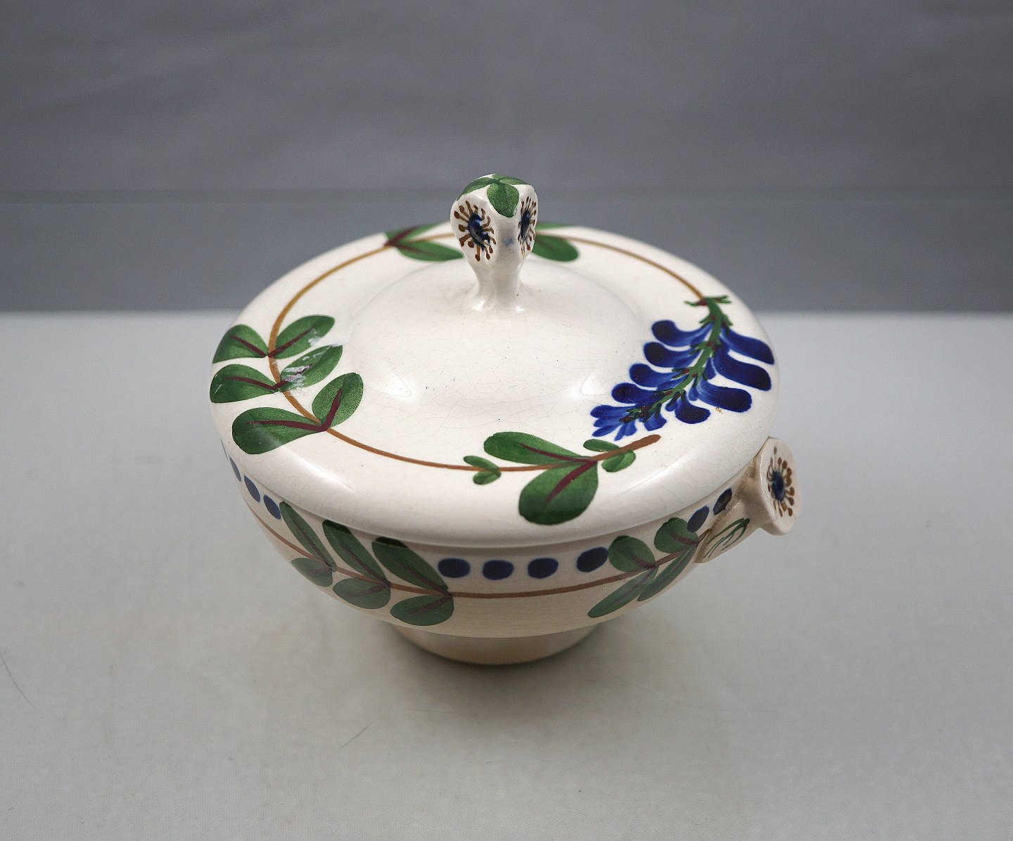 Aluminia Blåregn, sukkerskål nr. 522/432. Sukkerskål med låg , i fajance, fra Aluminia