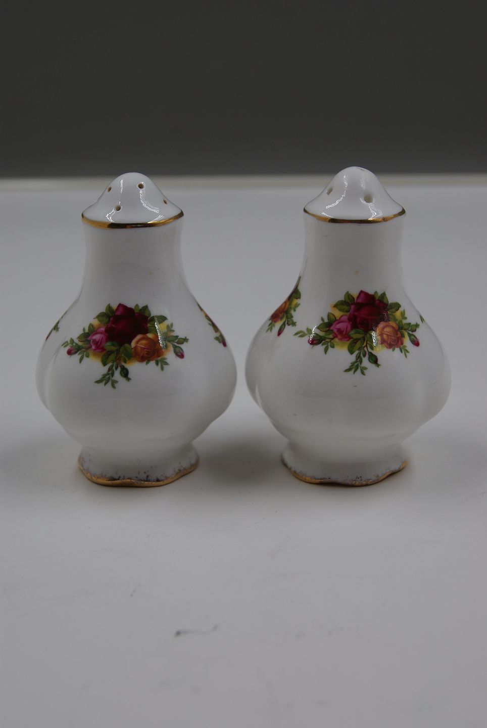 Landsbyrose engelsk bone China porcelæn. Sæt salt- og peberbøsser