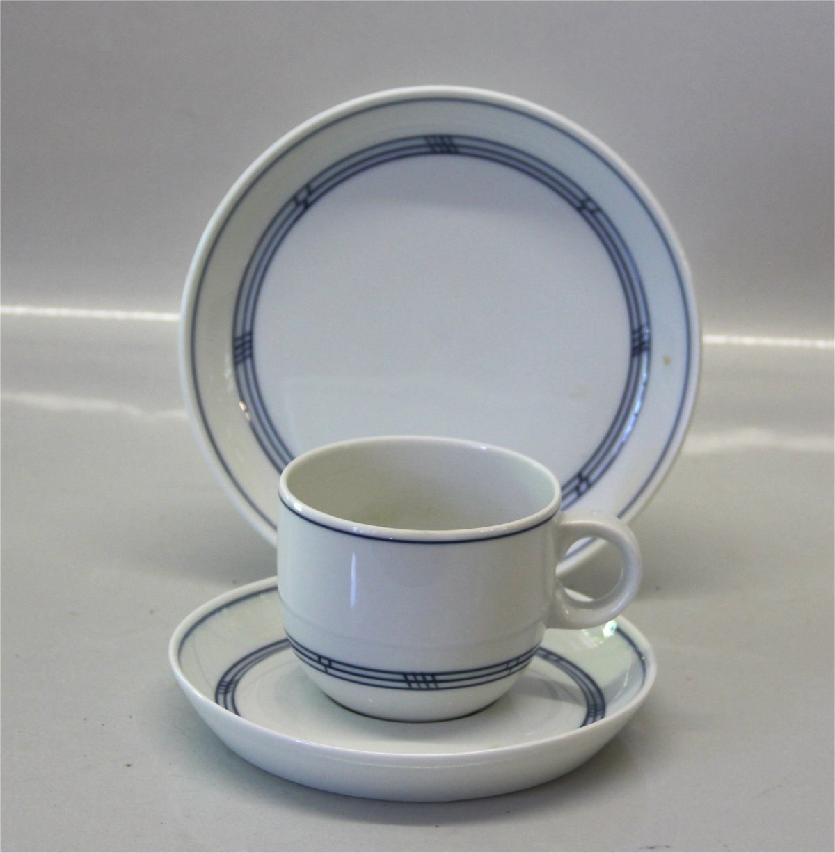 306 Kagetallerken 15,5 cm (028 a) B&G Delfi: Kraftigt hvidt porcelæn med mønster med blå streger, som Olympia, form 43 Bing & Grøndahl Delphi