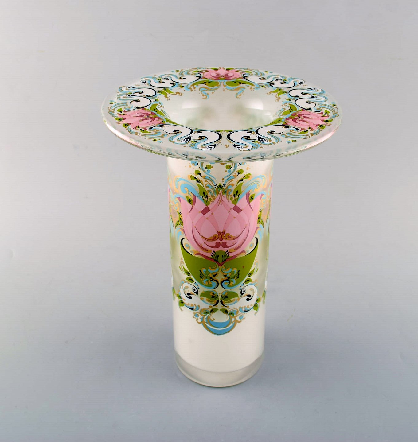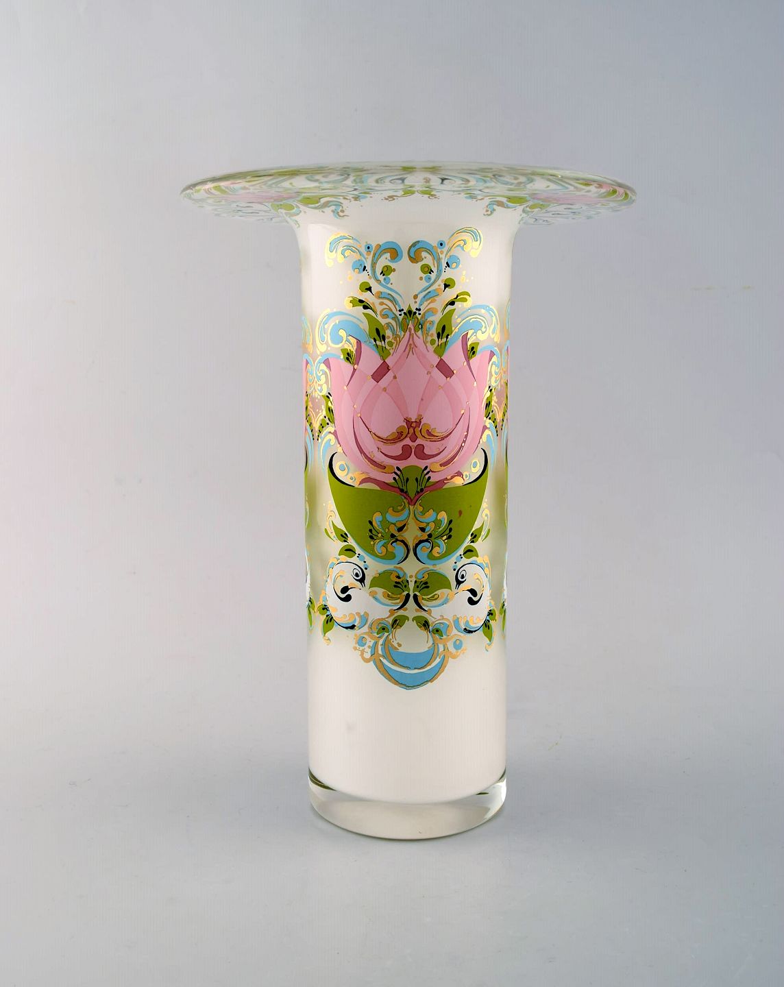 Bjørn Wiinblad for Rosenthal Studio Linie. Vase i kunstglas dekoreret med blomster og svaner. 1980'erne.