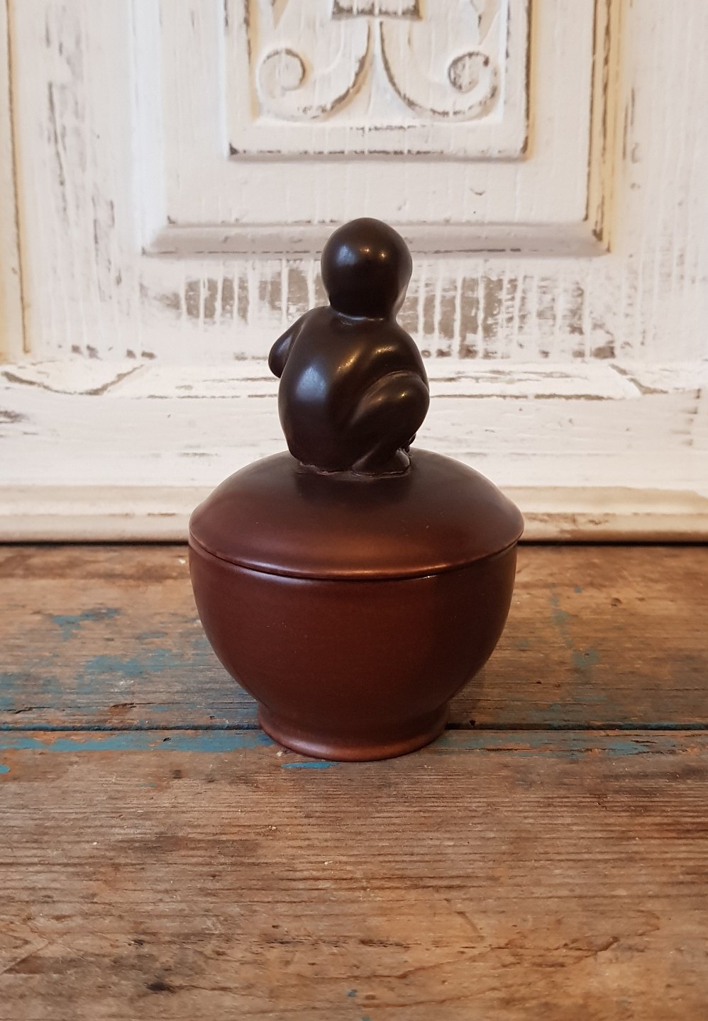 Aluminia lille lågskål med dreng med drueklase på låget.