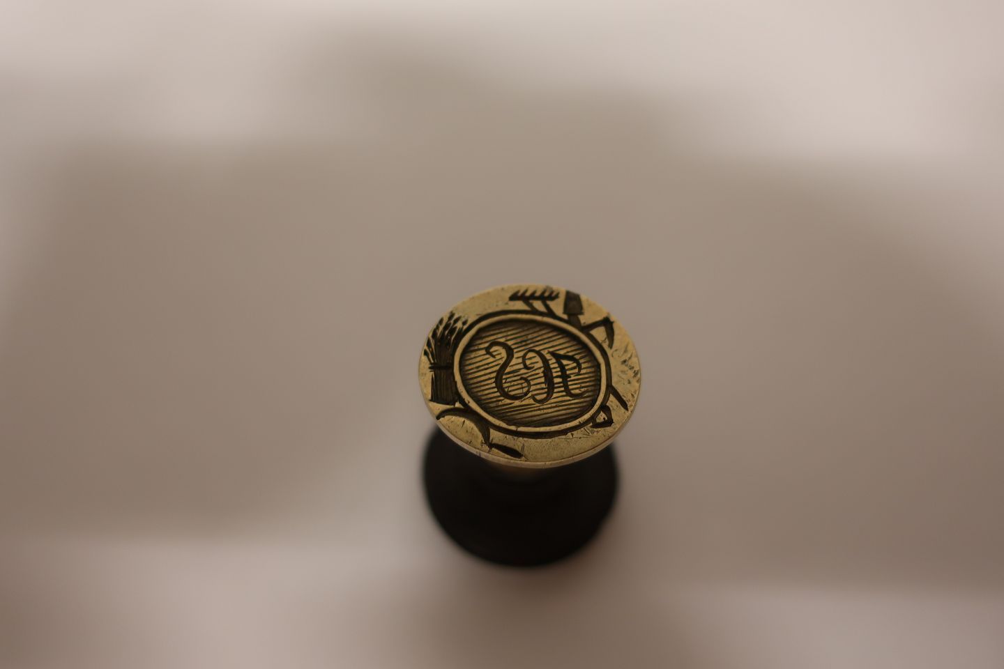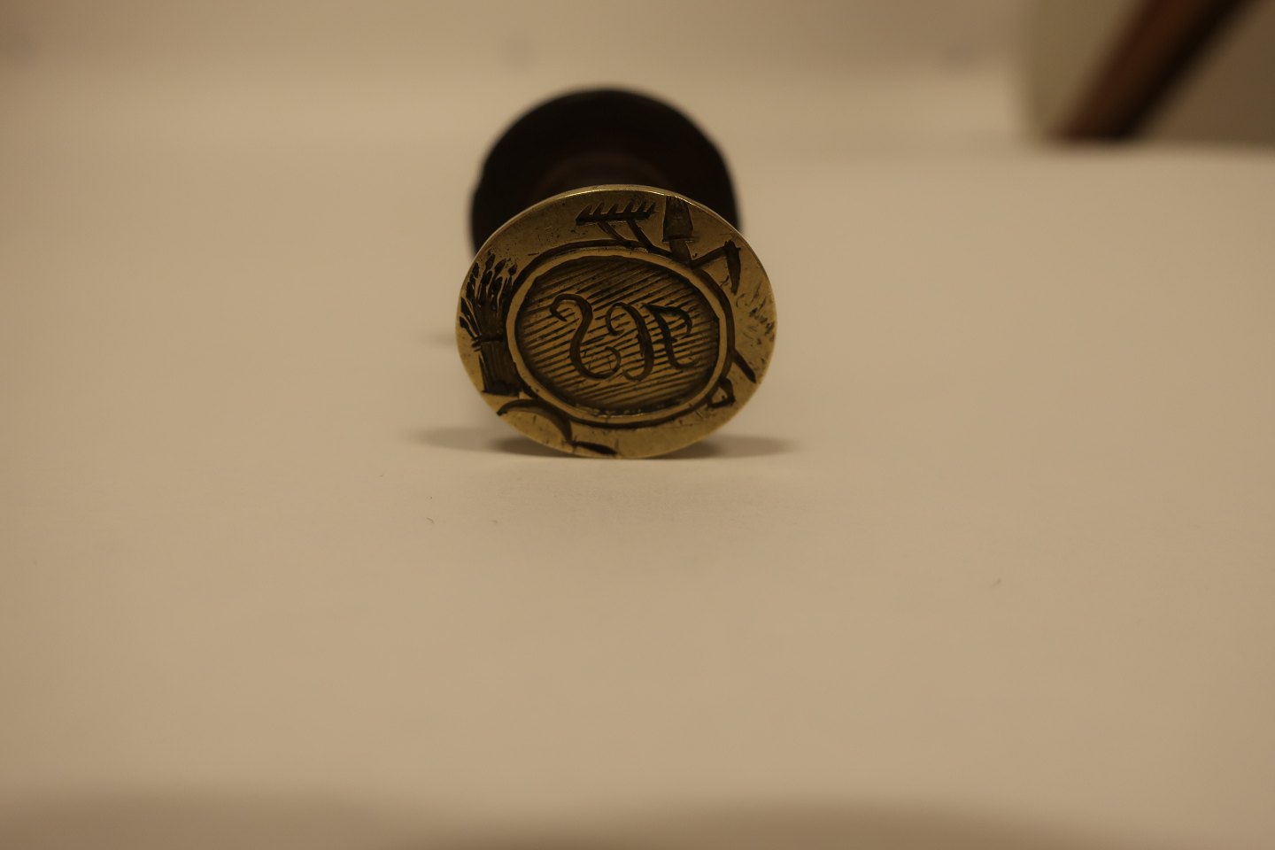 Unik signet af messing med håndtag af træ