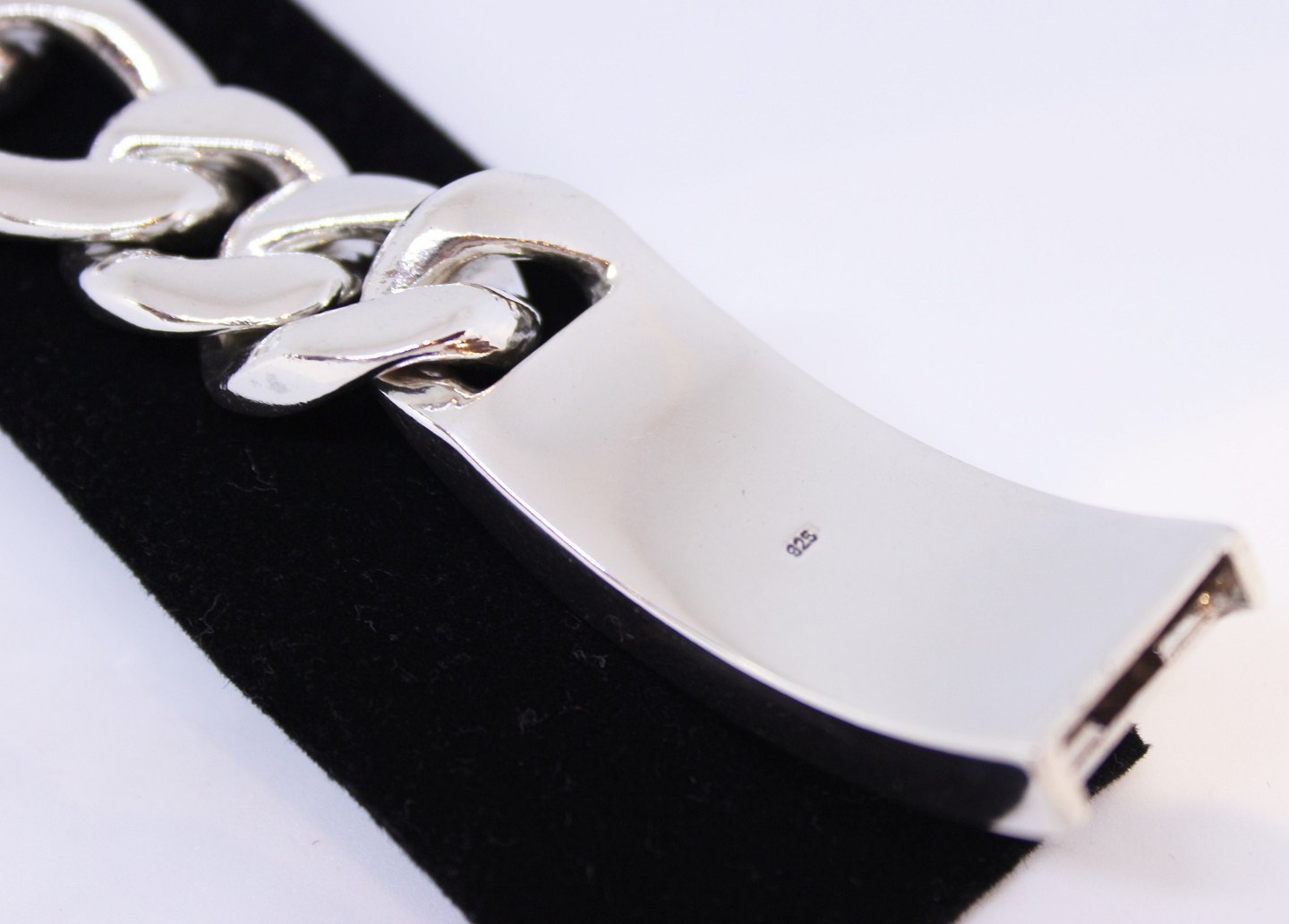 Tung og bred armkæde af 925 sterling sølv. Kæden er i flot brugt stand.