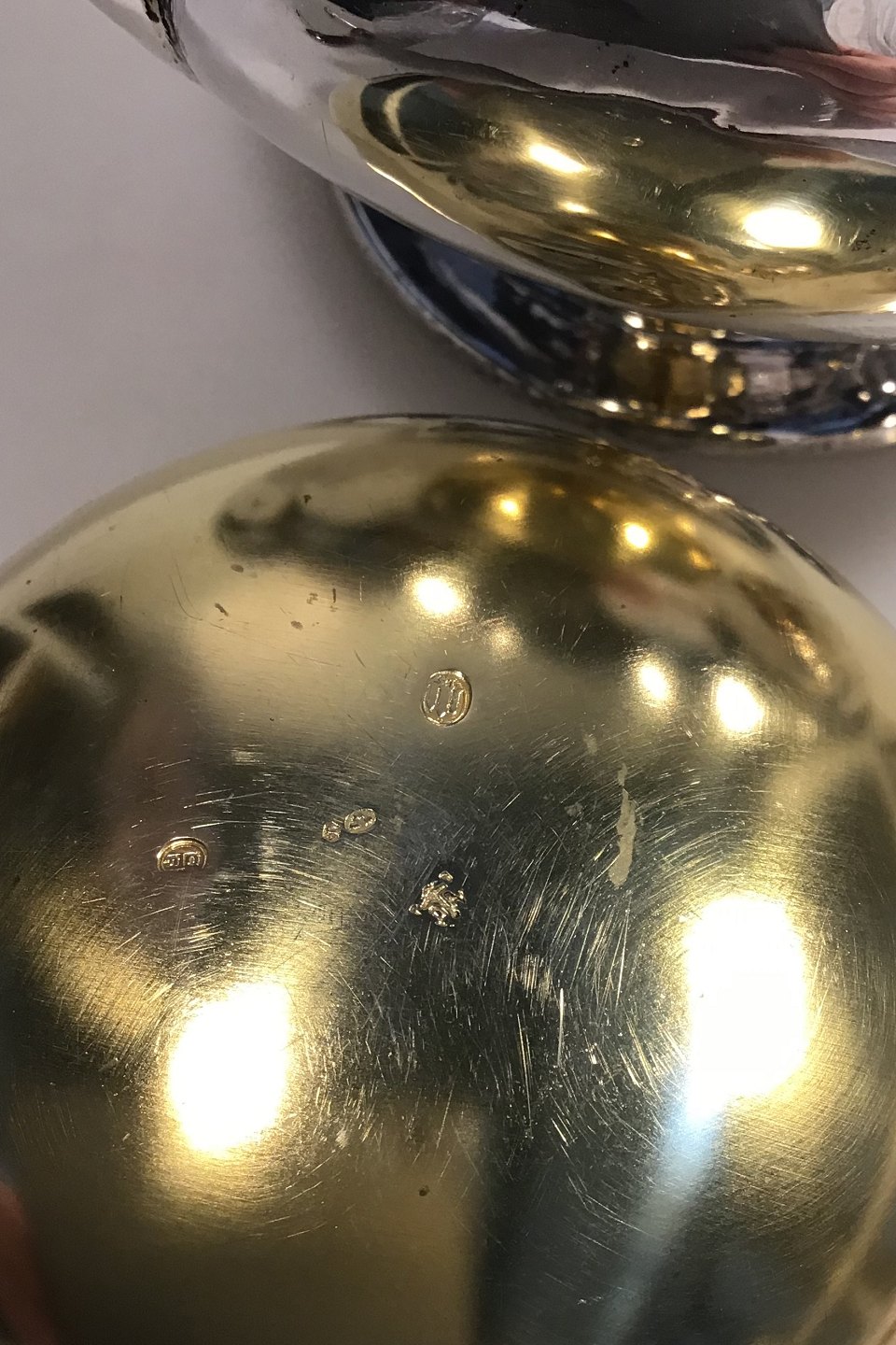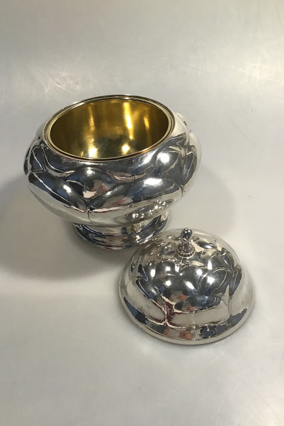 Kaviarlågskål, Sølv, forgyldt inderskål (1919) Måler H 18 Vægt samlet 684 gr Svenske importstempler