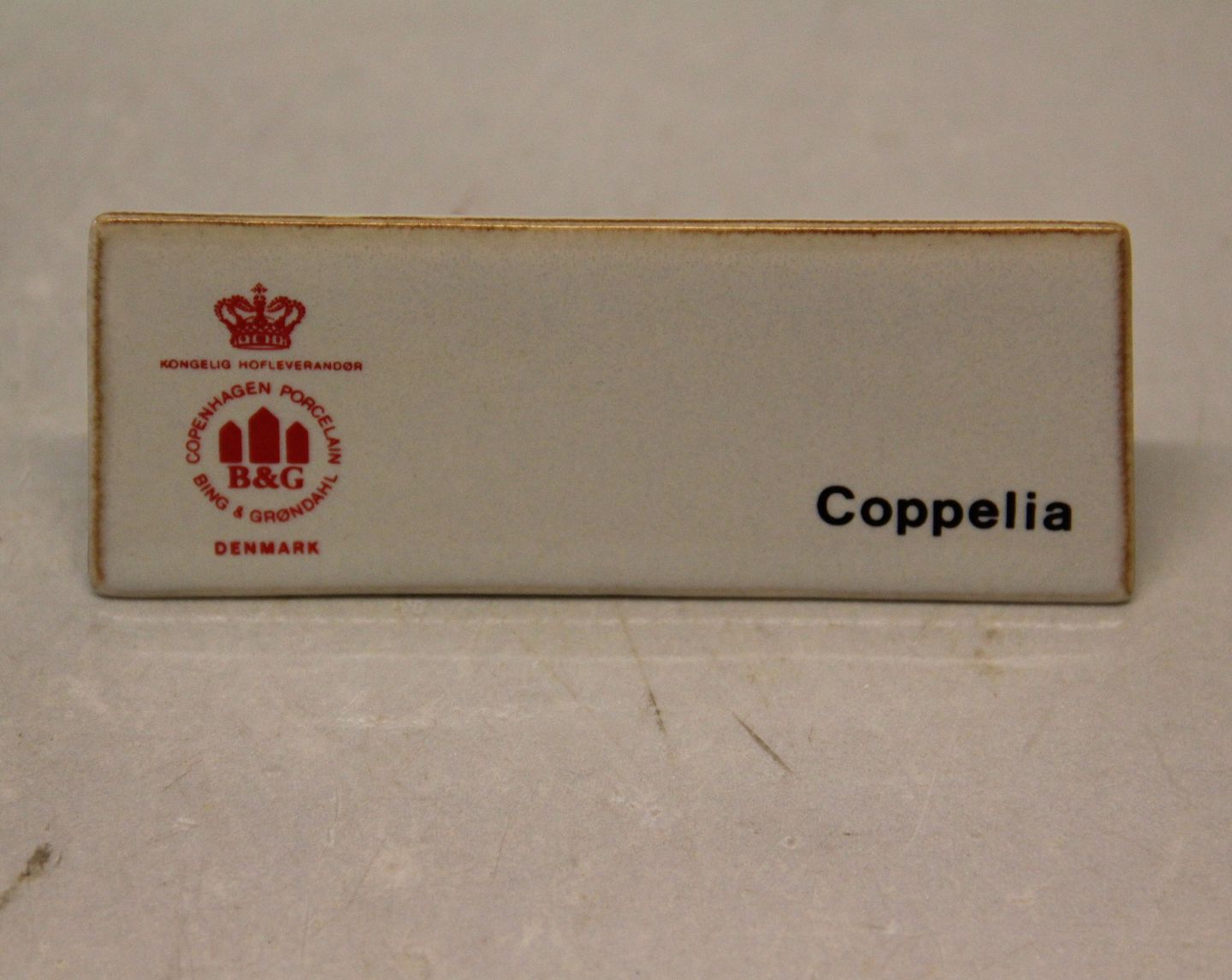 Coppelia Bing & Grøndahl Stoneware B&G forhandler skilte for Coppelia Ca 4 x 10 cm I fin og hel stand.