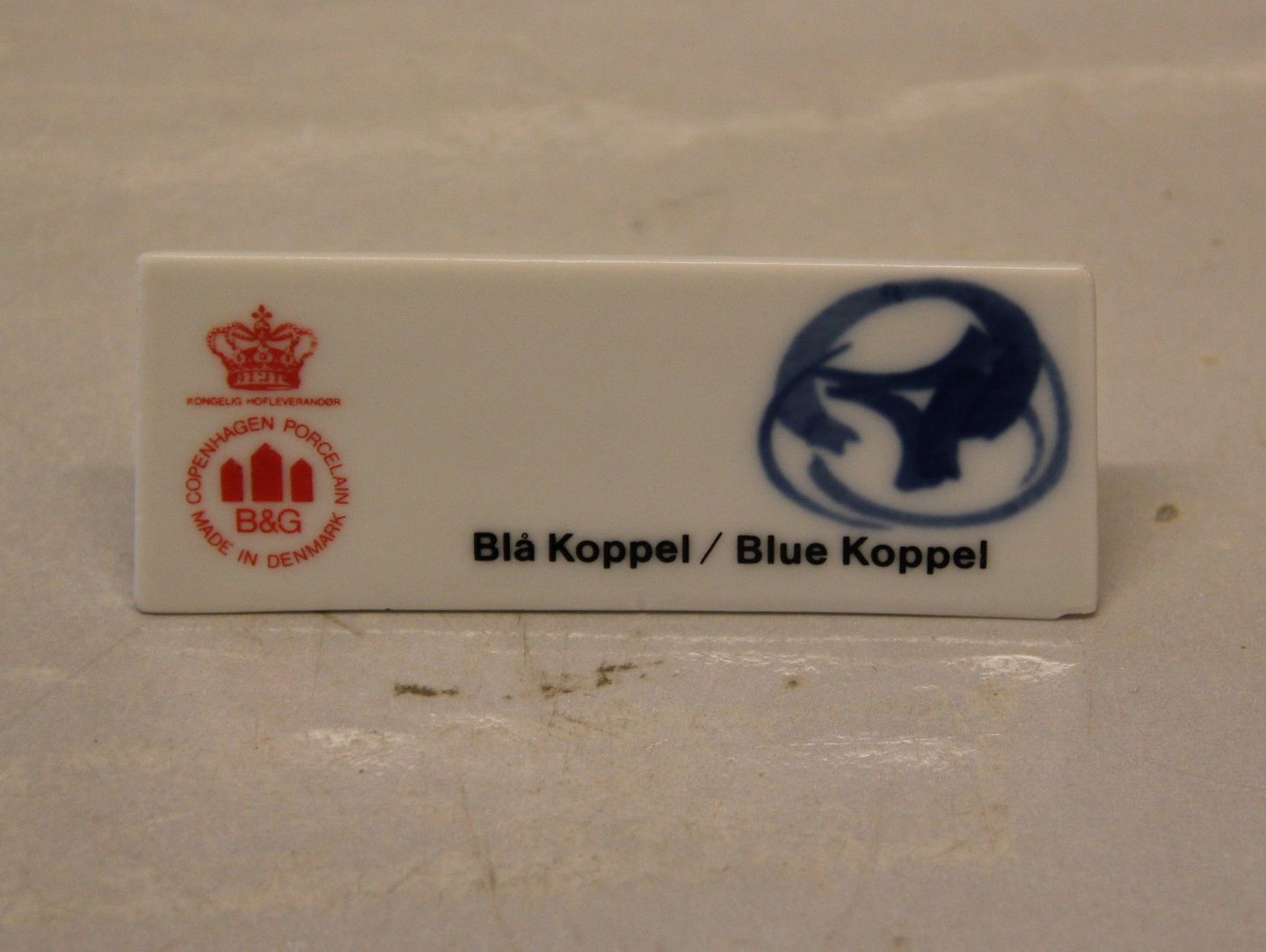 Bing & Grøndahl B&G forhandler skilte for Blå Koppel Ca 4 x 10 cm I fin og hel stand.