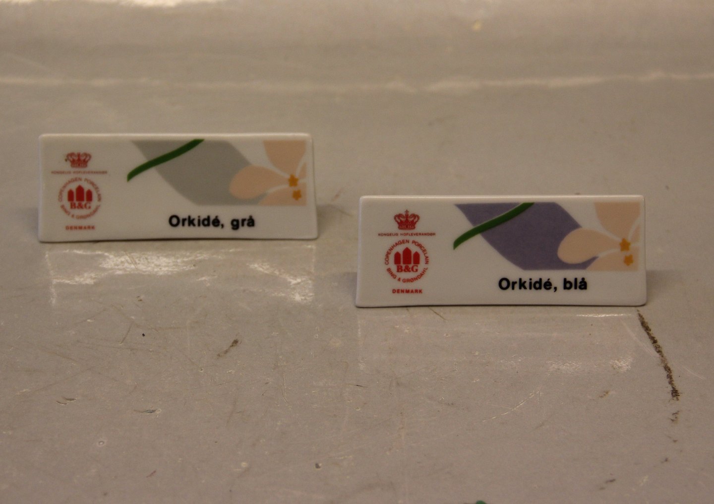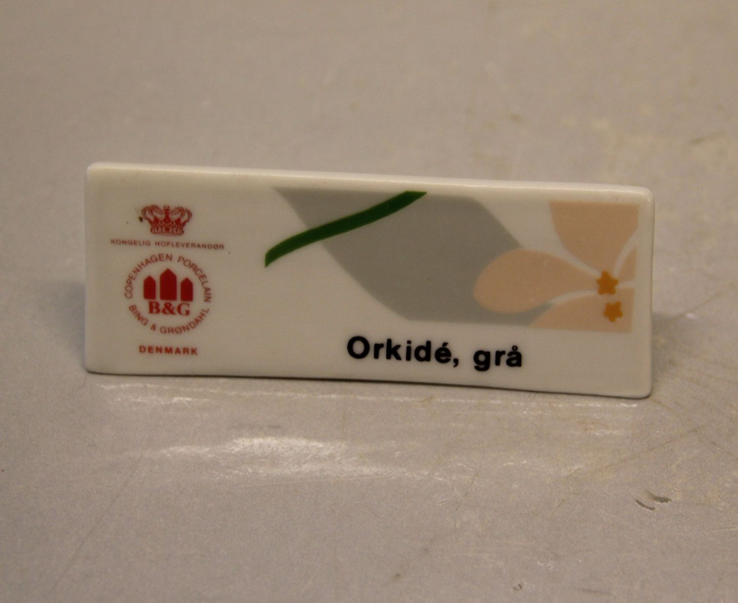Bing & Grøndahl B&G forhandler skilte for Grå Orkide Ca 4 x 10 cm I fin og hel stand.