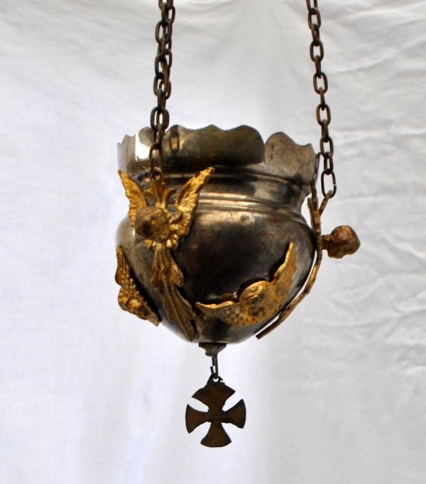 Religiøs Ampel - skålformet lampe ophængt i kæder, 19. årh