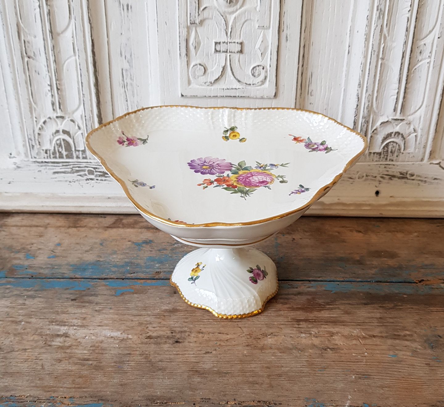 Royal Copenhagen Fuld Saksisk blomst trekantet kagefad på fod