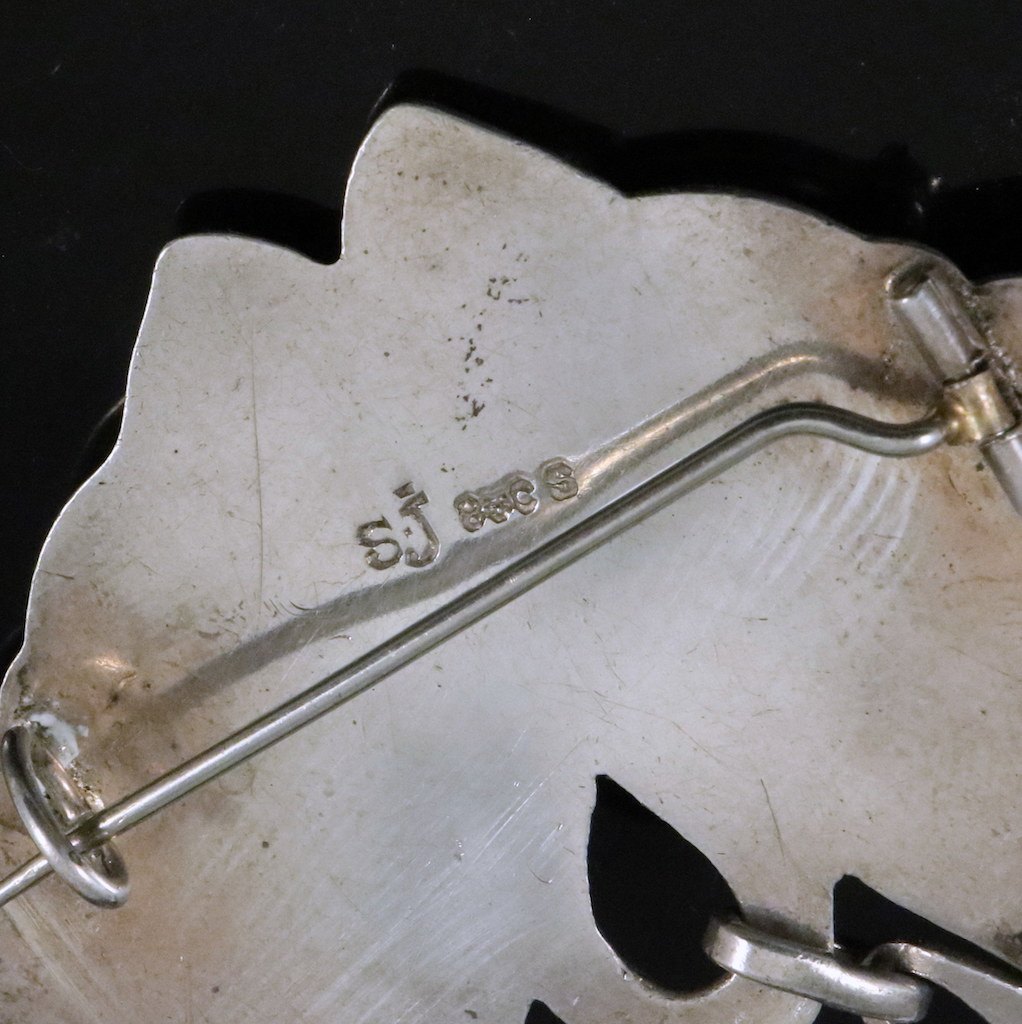 Evald Nielsen. Skønvirke Broche i Sølv med Lapis lazuli.