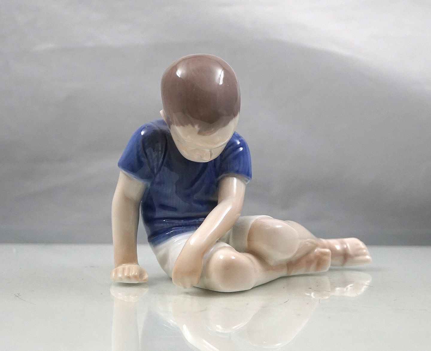 Bing & Grøndahl, Siddende dreng med blå trøje. Figuren er 1. sortering no 1671
