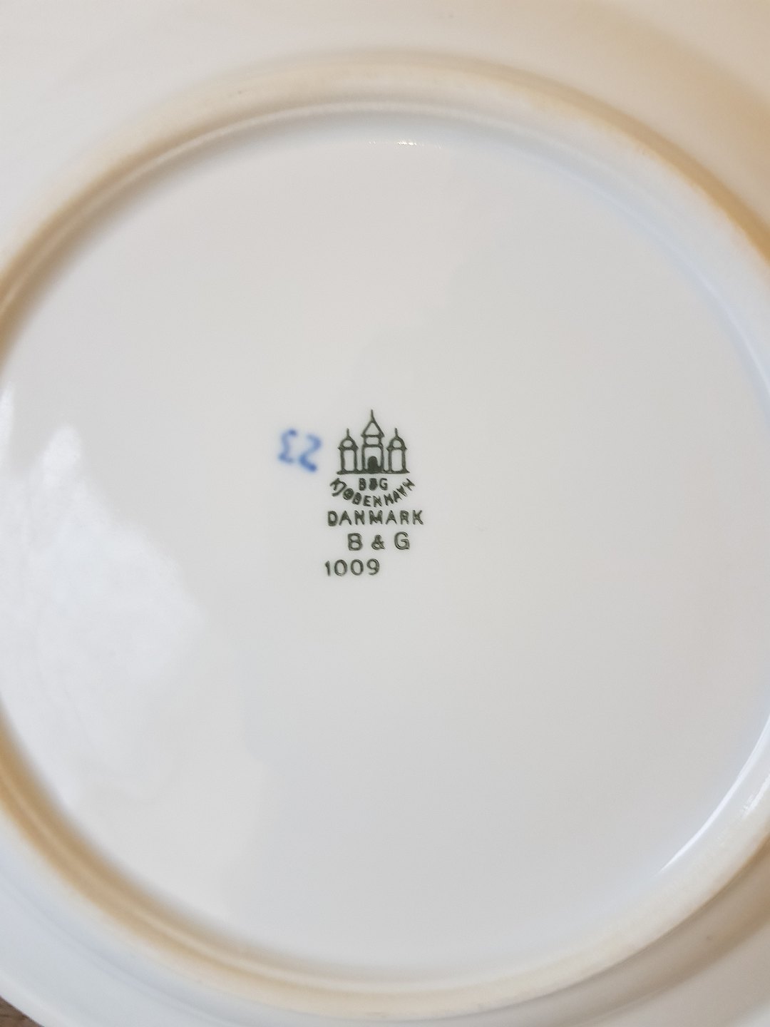 B&G Blåmalet Hotel porcelæn - middagstallerken med logo no. 1009, 24,5 cm. |