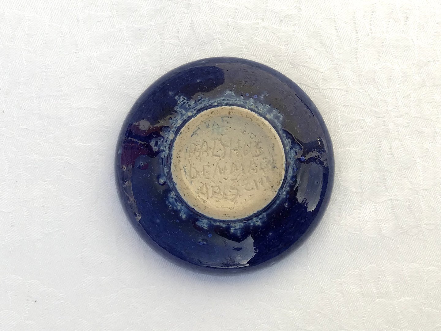 Palshus Keramik, Salt skål, blåglaseret chamotte, 8,5cm i diameter, Signeret Palshus Denmark *Pæn stand*