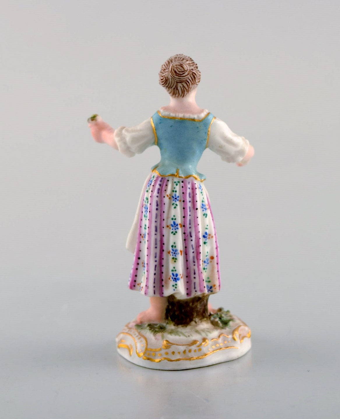 Sjælden antik Meissen miniature figur efter Johann Joachim Kändler i håndmalet porcelæn. Pige med blomster. Dateret 1850-80. Modelnummer 2869.