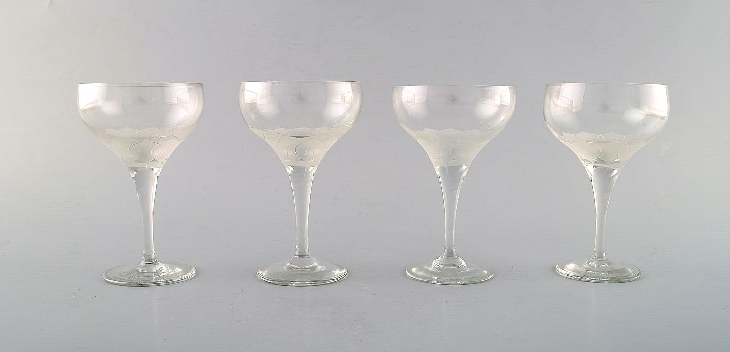 Bjørn Wiinblad (1918-2006) for Rosenthal. Fire "Lotus" glas i klart kunstglas dekoreret med lotusblomst. 1980'erne.