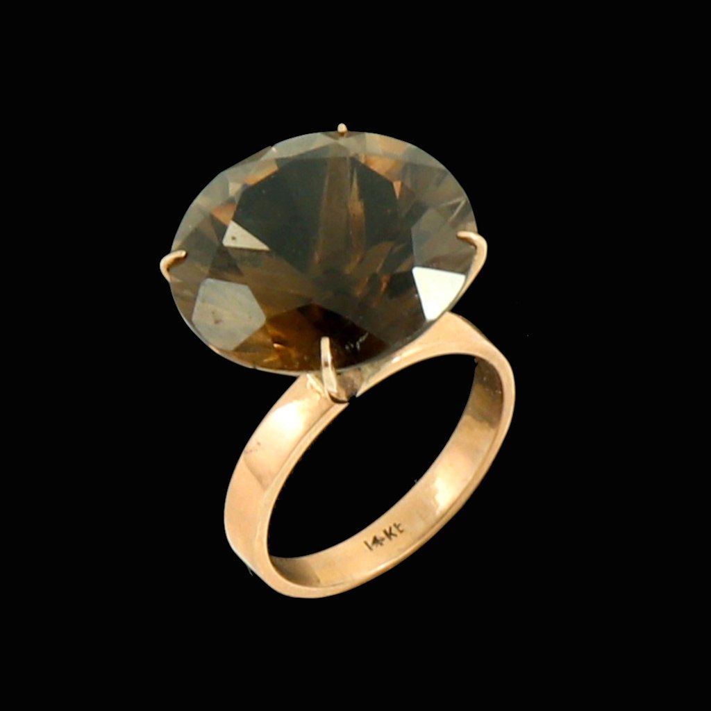 Cocktailring i 14k rosaguld med Røgkvarts.