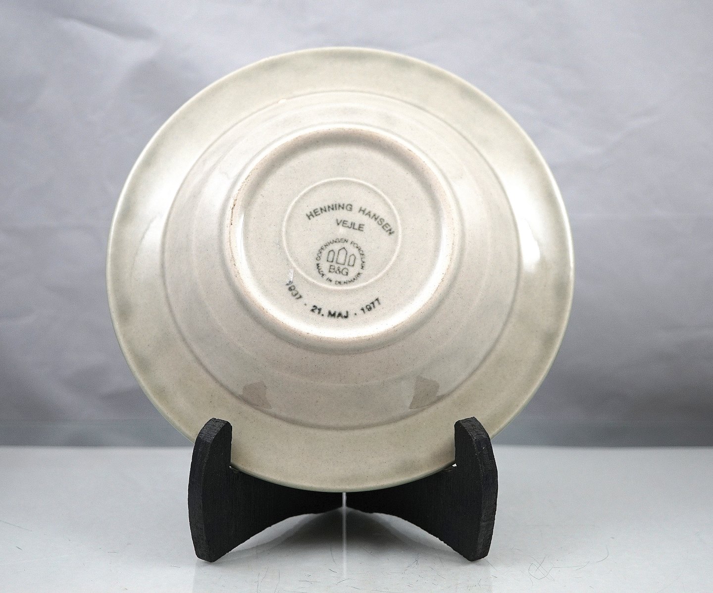 Bing & Grøndahl stenstøj stel rune. Asiet med logo. Tekst på bagsiden : Henning Hansen, Vejle. 1937 - 21. maj - 1977