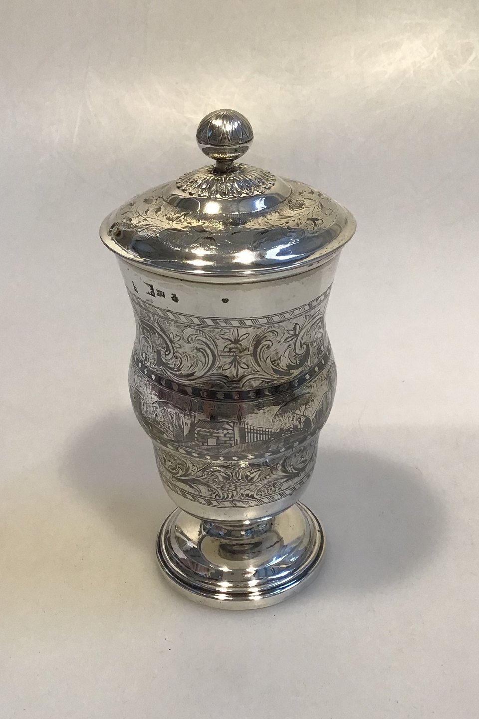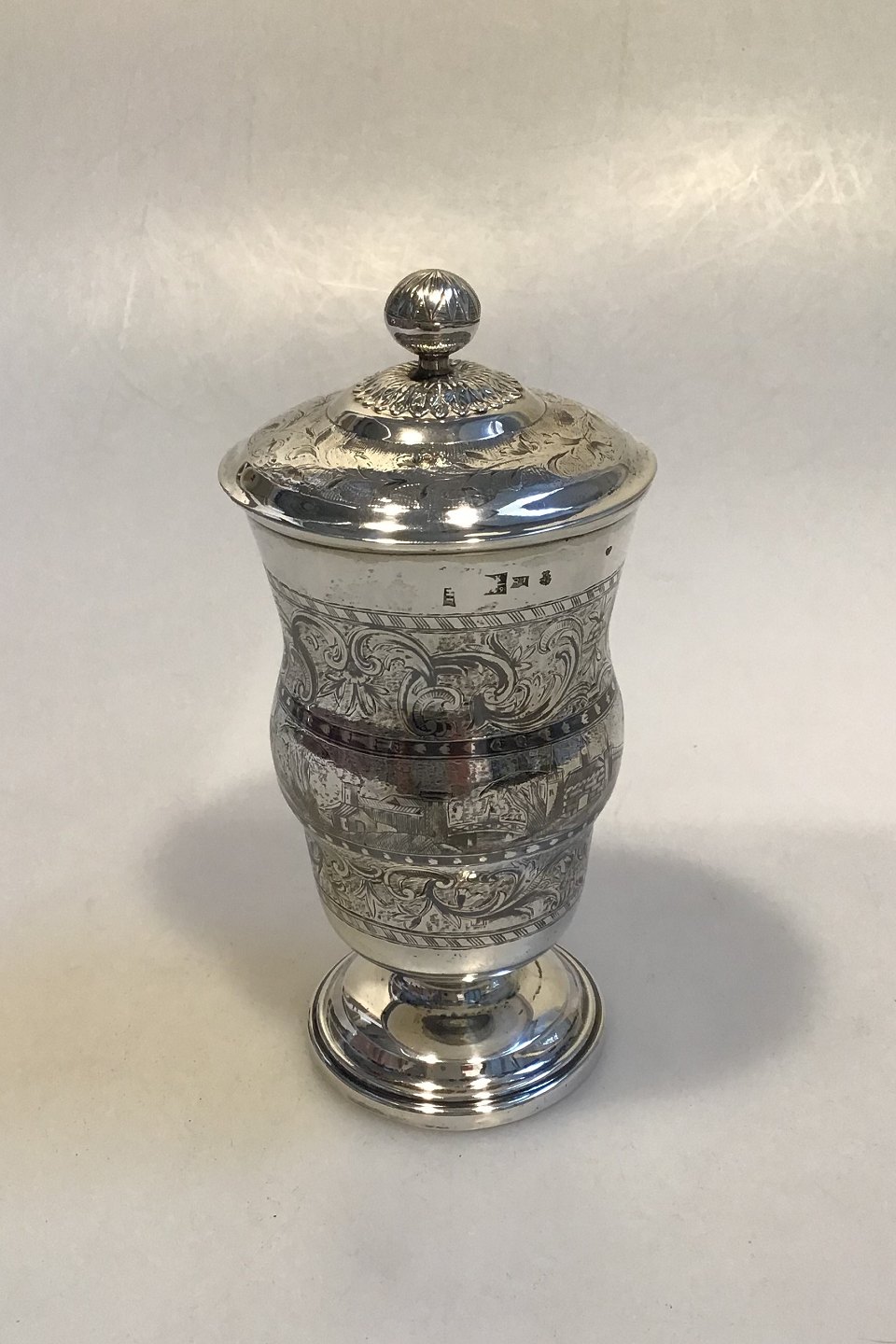 Russian Silver Lidded Goblet Niello Decoration Inside gilded Measures 16.5 cm Weight 210 gr/ 7.4 oz Swedish Import Hallmarks