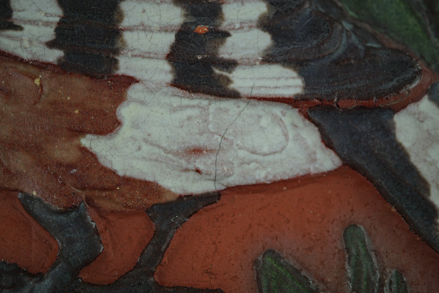 Rødlers relief af hærfugl. Relieffet er 1 ud af en serie på 7 relieffer.